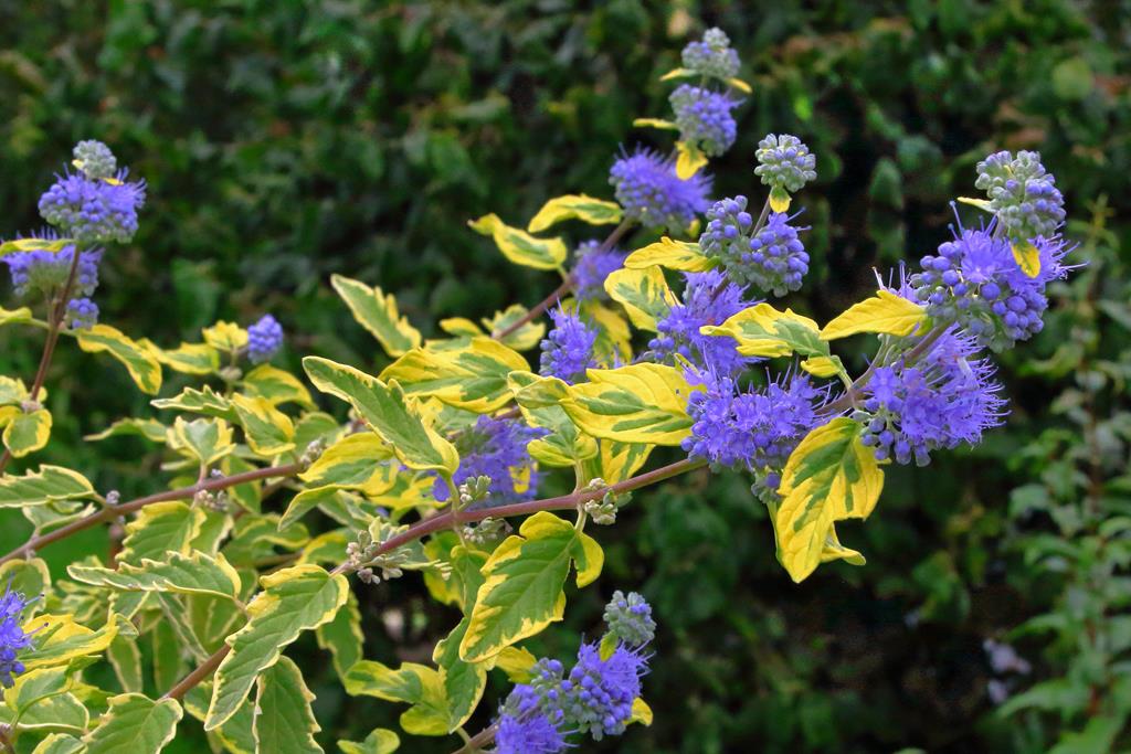 Opis. Krzyżówka barbuli szarej z barbulą mongolską. Krzew dorasta do 1 m wysokości. Pokrój półkolisty, zwarty. Liście lancetowate, szarozielone. Kwiaty ciemnoniebieskie z długimi pręcikami, kwitnie od sierpnia do września.