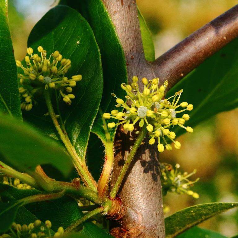 Opis. Drzewo do 20 m wysokości. Gałęzie cienkie, poziomo rozpostarte. Liście błyszczące, jajowate, ciemnozielone, jesienią jaskrawoczerwone. Kwiaty niepozorne, bezpłatkowe, zielonkawe, zebrane w główkowate kwiatostany. Zakwita w pierwszej dekadzie czerwca i kwitnie przez około 3 tygodnie. Owoce jadalne, lekko kwaśne pestkowce o długości około 1 cm.