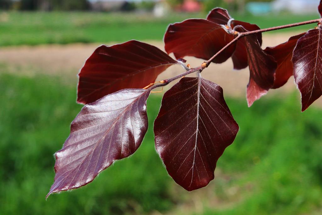 Opis. Długowieczne drzewo dorastające do 20 m wysokości. Korona szeroka, kulista, nisko osadzona. Liście ciemnoczerwone, błyszczące, jajowate lub eliptyczne, prawie całobrzegie. Drobne, rozdzielnopłciowe kwiaty pojawiają się na przełomie kwietnia i maja. Owoce osadzone w zdrewniałej okrywie owocowej