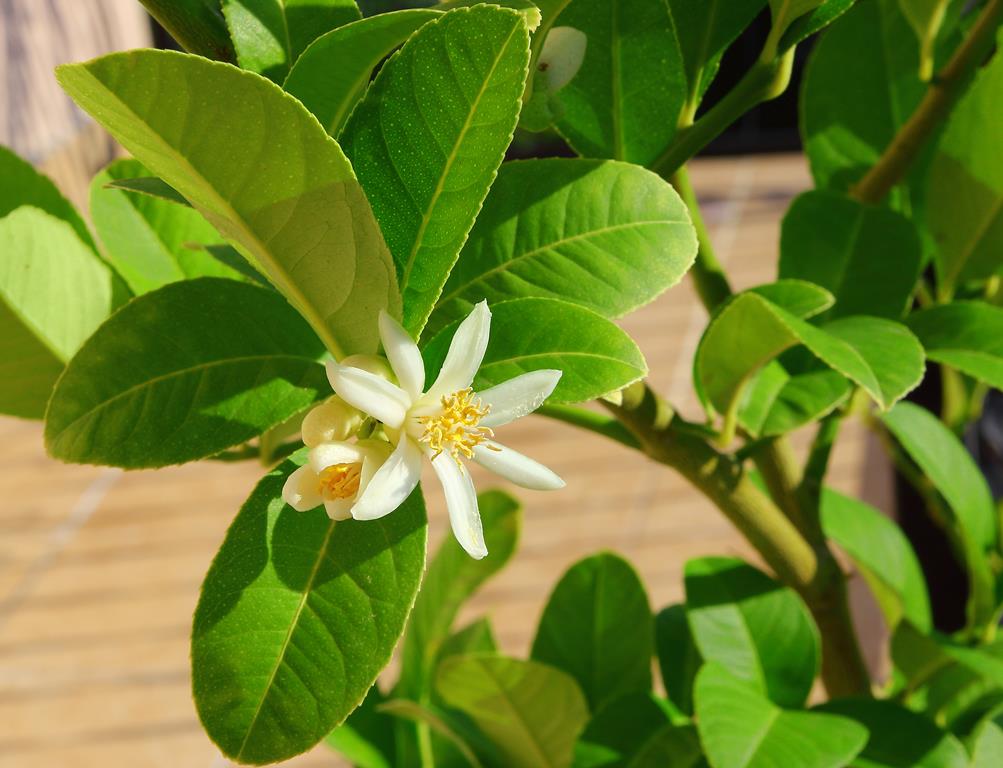 Opis. Wolno rosnący, niewielki krzew o luźnej, niesymetrycznej koronie osiągający 3 m wysokości. Liście duże, lancetowato-jajowate, skórzaste. Kwiaty białe, 5-płatkowe, wonne. Wielokrotnie powtarza kwitnienie w ciągu roku. Miąższ owoców niejadalny, do celów spożywczych wykorzystuje się skórkę.