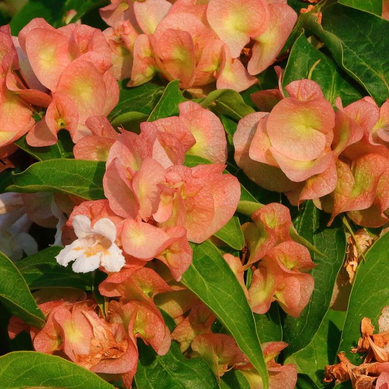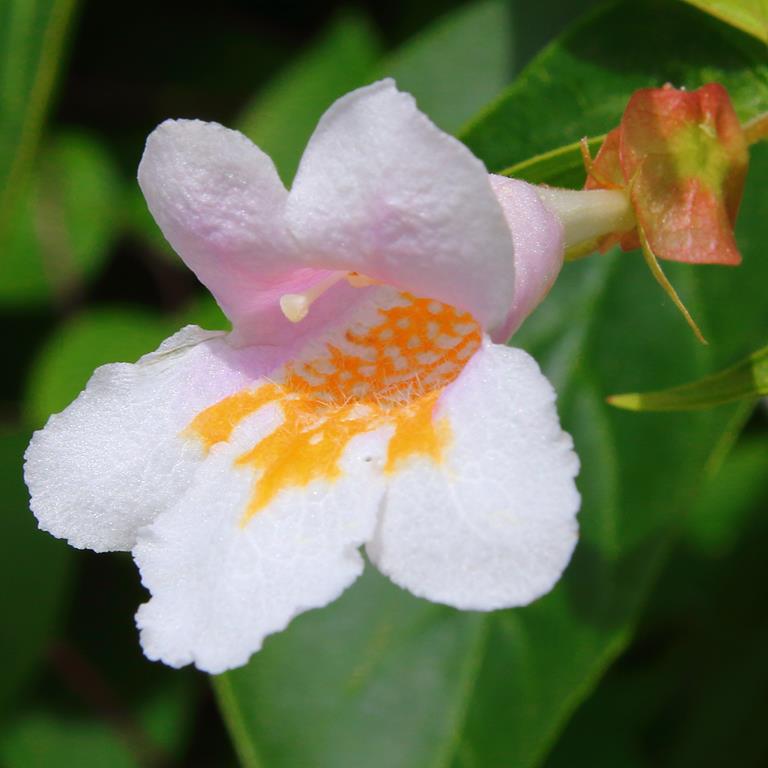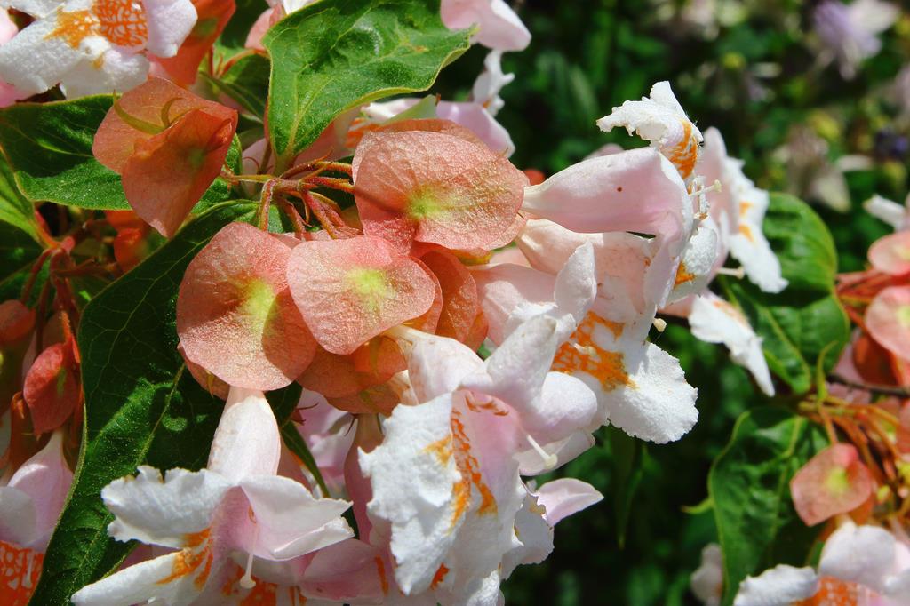Opis. Rzadko spotykany rozłożysty krzew dorastający do 2-3 m wys. Kora jasna, łuszcząca się. Kwiaty dzwonkowate, jasnoróżowe, zebrane w wiechy. Kwitnie obficie w połowie maja. Wytwarza ozdobne tarczowate przysadki.