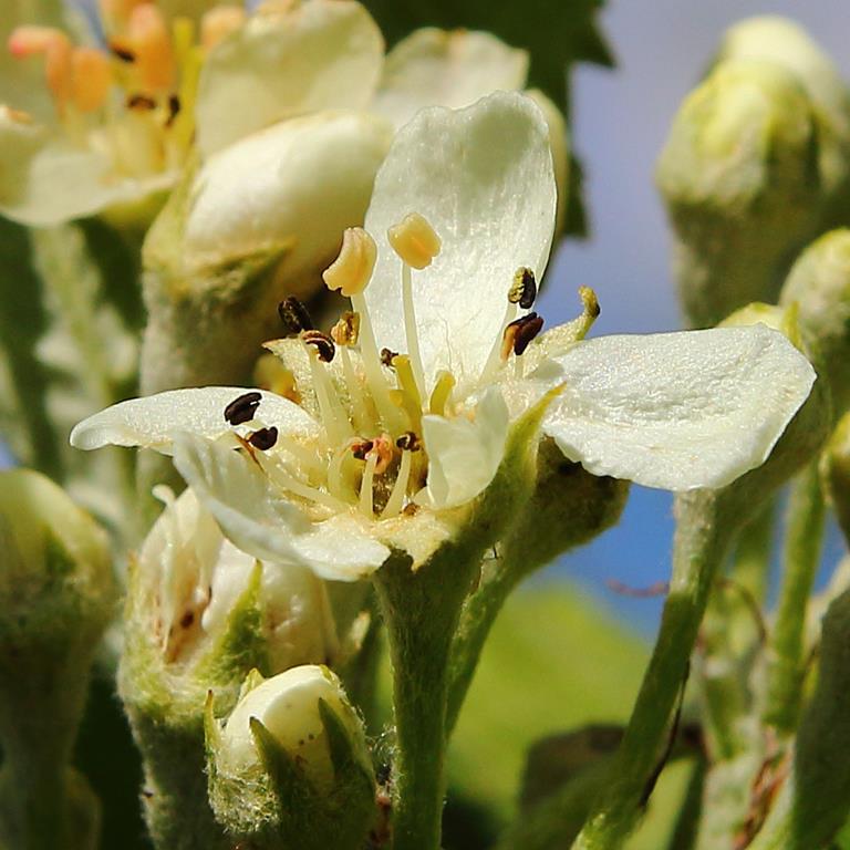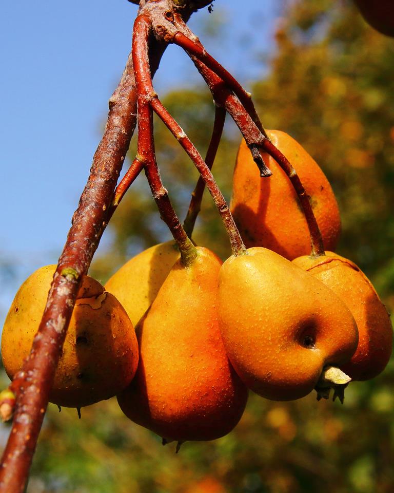 Opis. Drzewo wysokości do 10 m. Pokrojem przypomina gruszę. W okres owocowania wchodzi po 8-10 latach uprawy. Kwitnie w połowie maja. Owoce drobne, gruszkowate, żółte z czerwonym rumieńcem.