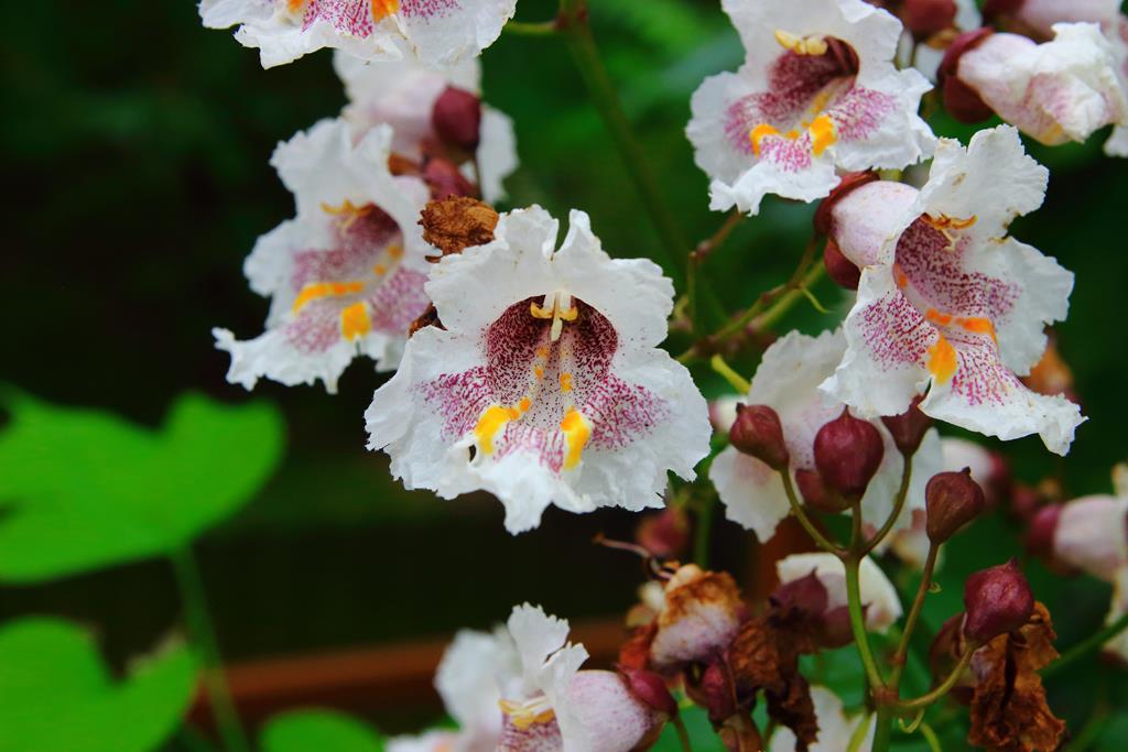Opis. Drzewo dorastające w Polsce do wysokości 15-20 metrów. Korona rozłożysta, zaokrąglona. Kwiaty białe, duże, wewnątrz fioletowo nakrapiane, zebrane w wiechowate kwiatostany. Kwitnie bardzo obficie w lipcu. Owoce - grube strąki, zwykle nieliczne, długości do 40 cm.