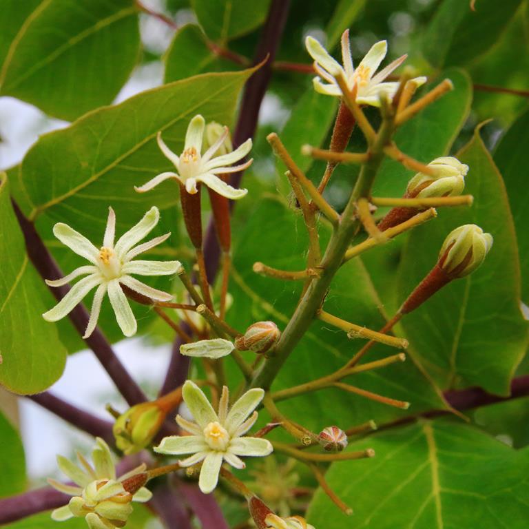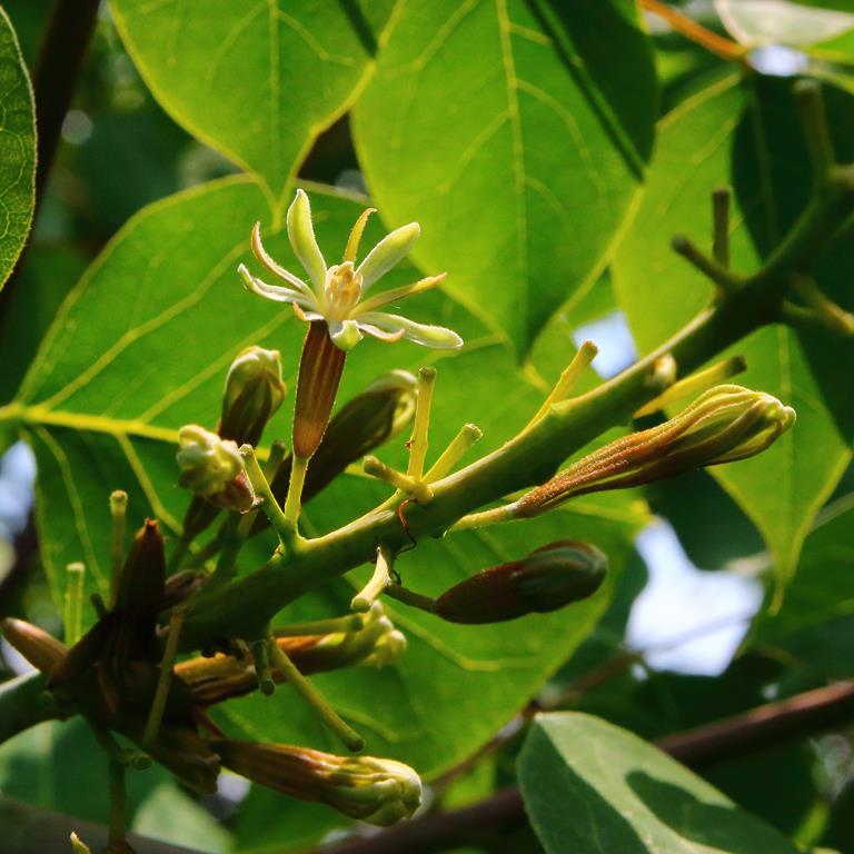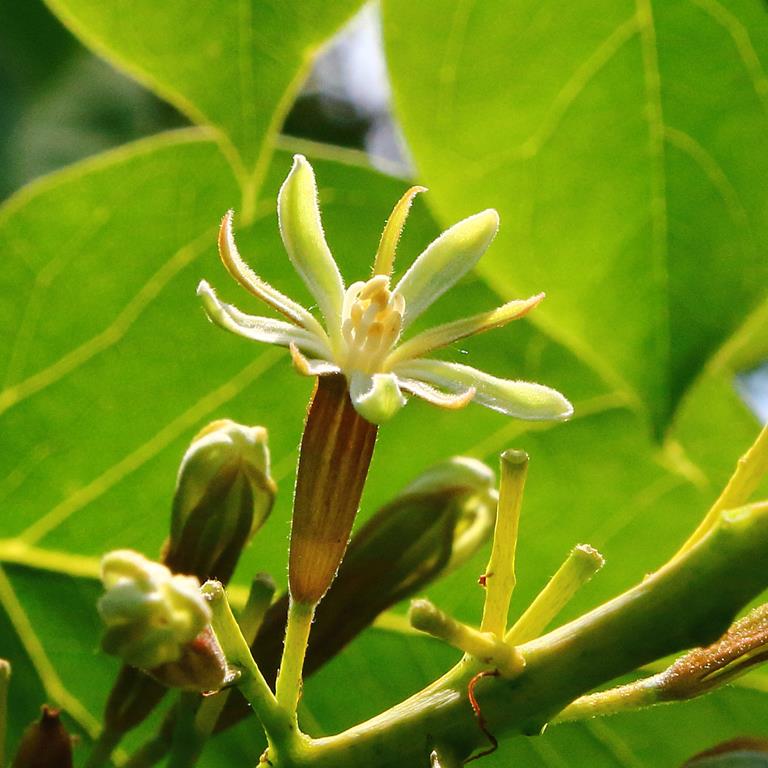Opis. Drzewo wolno rosnące, dorastające w naszych warunkach do 20-25 m wysokości. Korona szeroka, luźna, pędy słabo rozgałęzione. Liście bardzo duże, pierzasto złożone. Kwiaty żeńskie i męskie na osobnych roślinach. Kwitnie w połowie czerwca. Owoce - ciemnobrązowe, grube strąki długości 20 cm. W okres owocowania wchodzi późno, ok. 15 lat po posadzeniu. Wytwarza odrosty korzeniowe.