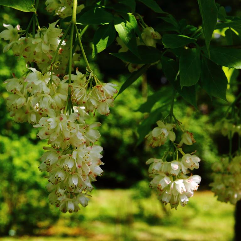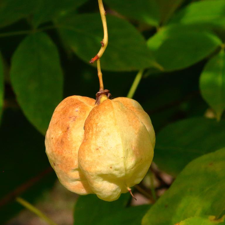 Opis. Rozłożysty krzew dorastający do około 4 m wysokości. Kwiaty białe lub lekko zaróżowione, zebrane w groniaste, zwisające kwiatostany, pojawiają się maju. Owoce w postaci rozdętych, kulistych torebek dojrzewających we wrześniu i październiku. Nasiona jadalne, wykorzystywane do wyrobu różańców. Roślina bardzo rzadko występuje w południowej Polsce, objęta ochroną ścisłą.