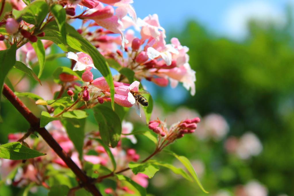 Opis. Krzew dorastający do 2-3 m wysokości, o gęstej, zaokrąglonej koronie, z łukowato wygiętymi gałązkami. Kwiaty dzwonkowate, jasnoróżowe, zebrane w bardzo liczne, gęste, wiechowate kwiatostany. Kwitnie bardzo obficie na przełomie maja i czerwca przez około 3 tygodnie.