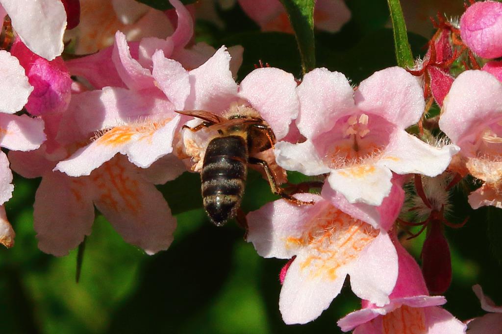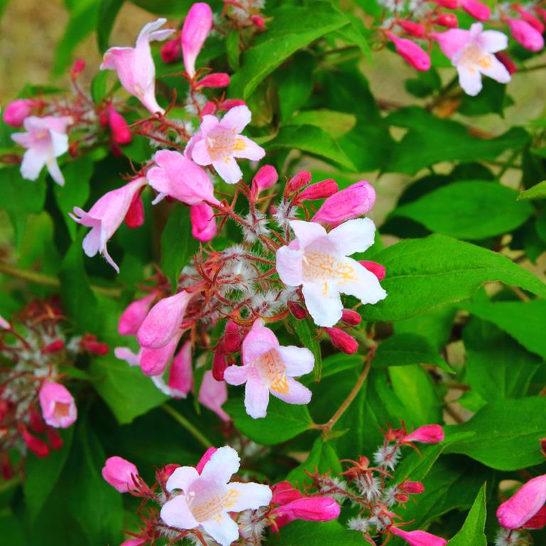 Opis. Krzew o rozłożystym pokroju z przewieszającymi pędami, dorastający do 2-3 m wysokości. Liście jajowate długości 3-7 cm. Kwiaty różowe, 5-krotne, dzwonkowate ze zrośniętym do połowy kielichem. Kwitnie na przełomie maja i czerwca.