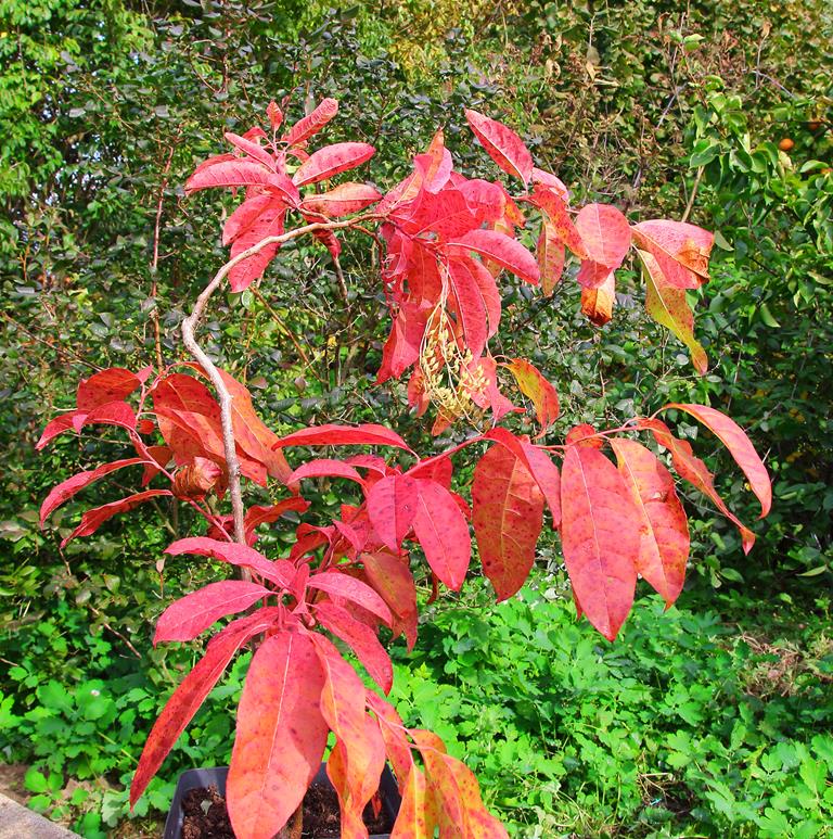 Opis. Duży krzew lub niewielkie drzewo dorastające w naszych warunkach do wysokości 5-10 m. Korona stożkowata, gęsta. Liście lancetowate, długości do 20 cm, kwaśne w smaku, jesienią przebarwiają się na intensywnie bordowy kolor. Kwitnie w lipcu i sierpniu. Kwiaty białe, pachnące zebrane w rozgałęzione, wiechowate kwiatostany.