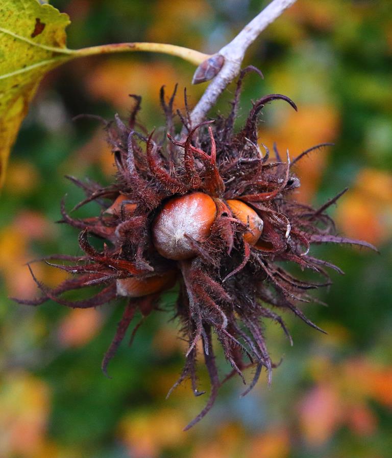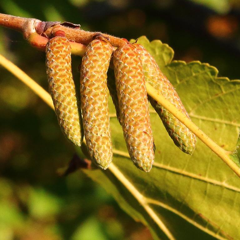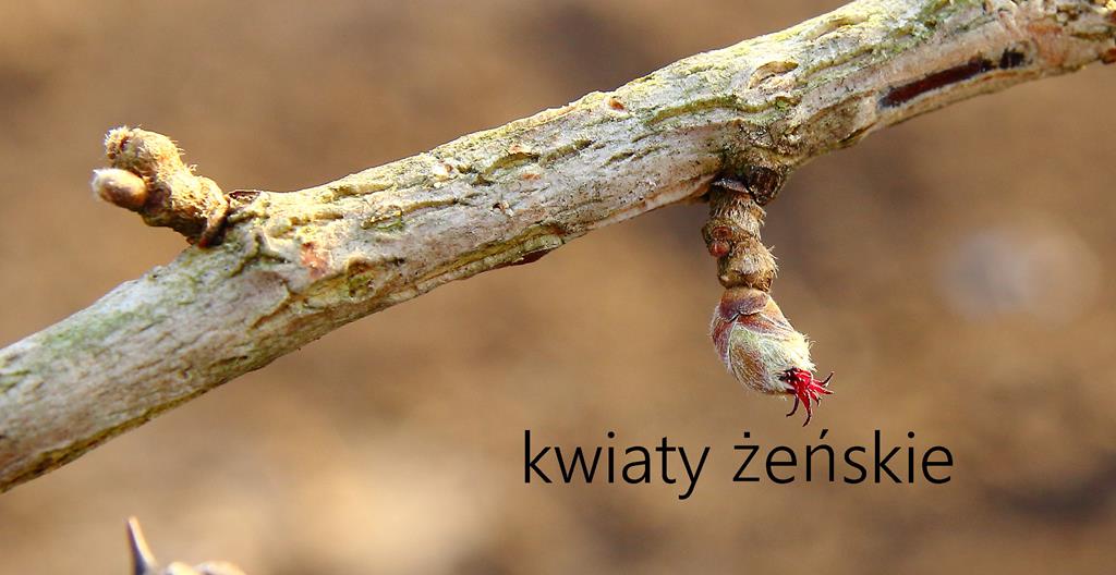 Opis. Drzewo dorastające do 20 m wysokości. Korona regularna, szeroko stożkowa. Roślina jednopienna. Kwiatostany męskie jasnożółte, długości ok. 10 cm. Kwity żeńskie słabo widoczne, bez wartości dekoracyjnych. Kwitnie w marcu. Owoce – jadalne orzechy w pęczkach po kilka sztuk pokryte frędzelkowatą okrywą, dojrzewają we wrześniu.