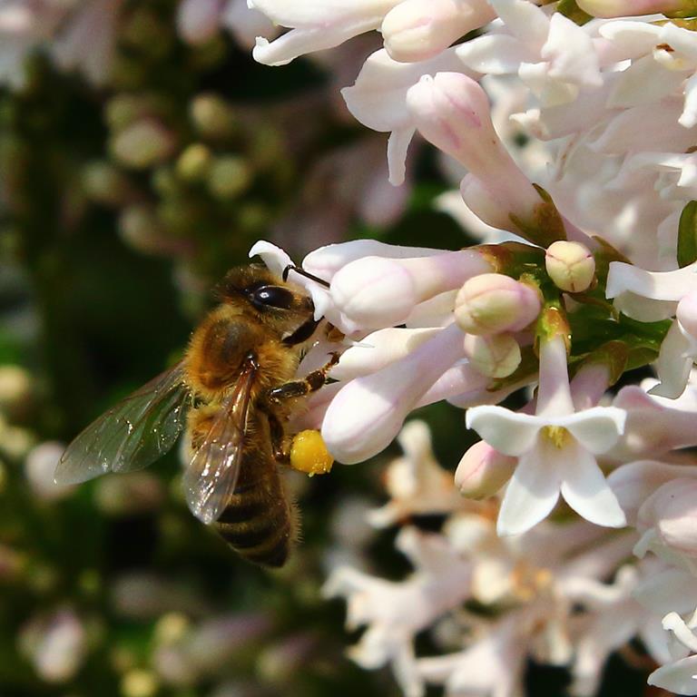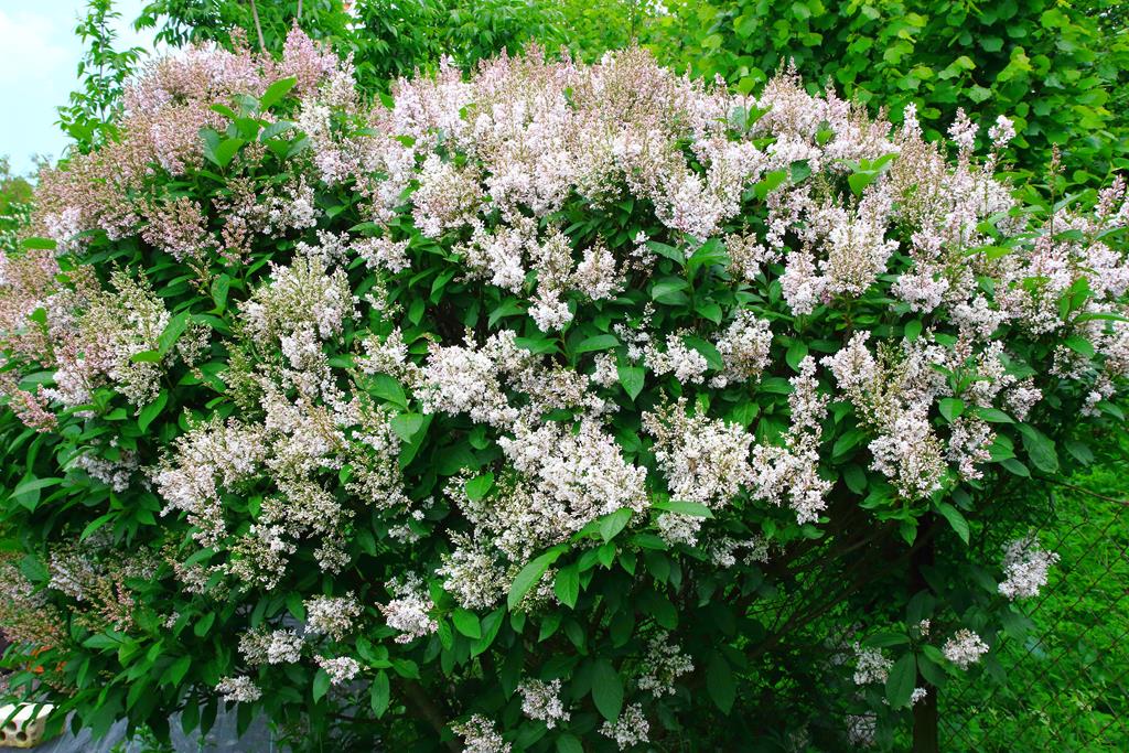 Opis. Krzew dorastający do 4 m wysokości. Pokrój gęsty, zwarty, pędy sztywne. Liście ciemnozielone, szeroko eliptyczne, do 12 cm długości. Kwiaty jasnoróżowe, zebrane w gęste, wyprostowane wiechy. Kwitnie bardzo obficie w maju.