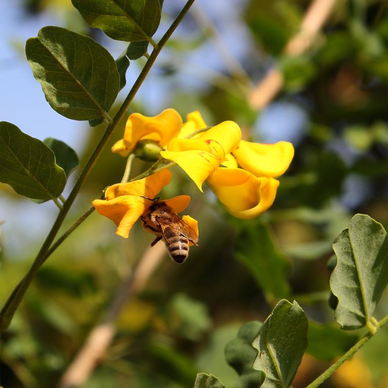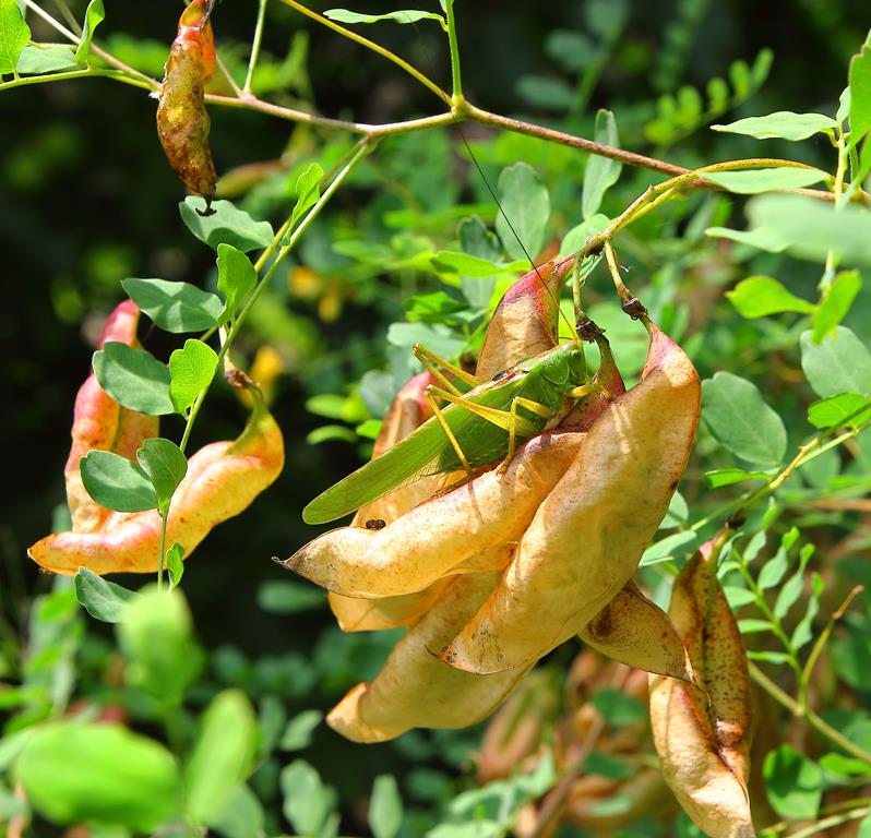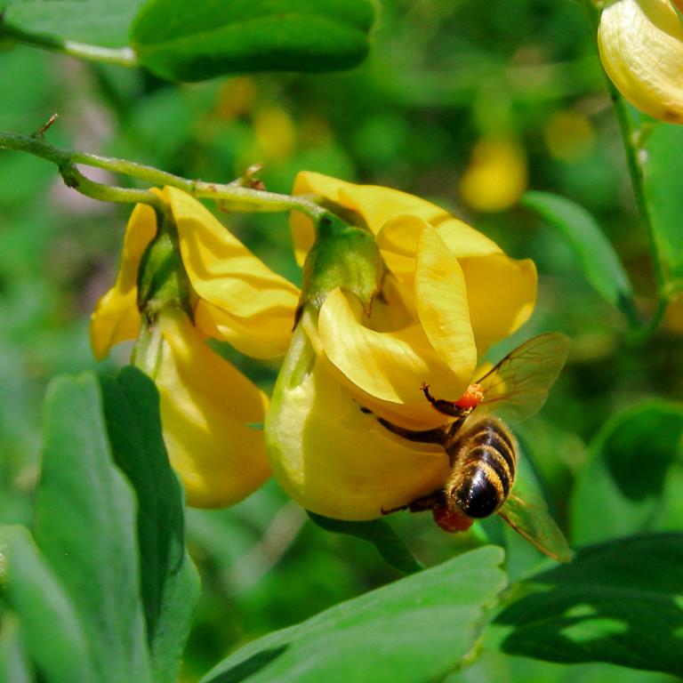 Opis. Krzew o wysokości do 3-4 m. Liście jasnozielone, pierzaste, złożone z maksymalnie 6 par listków. Kwiaty żółte, motylkowe, zebrane po kilka w luźne, zwisłe grona. Kwitnie od czerwca do jesieni. Owoce – rozdęte, pęcherzykowate strąki do 8 cm długości.