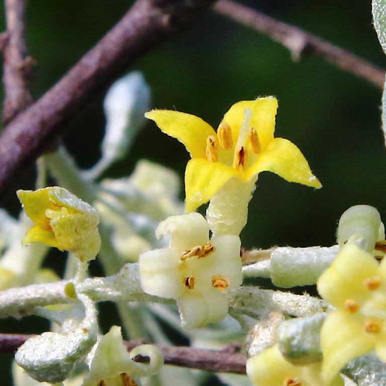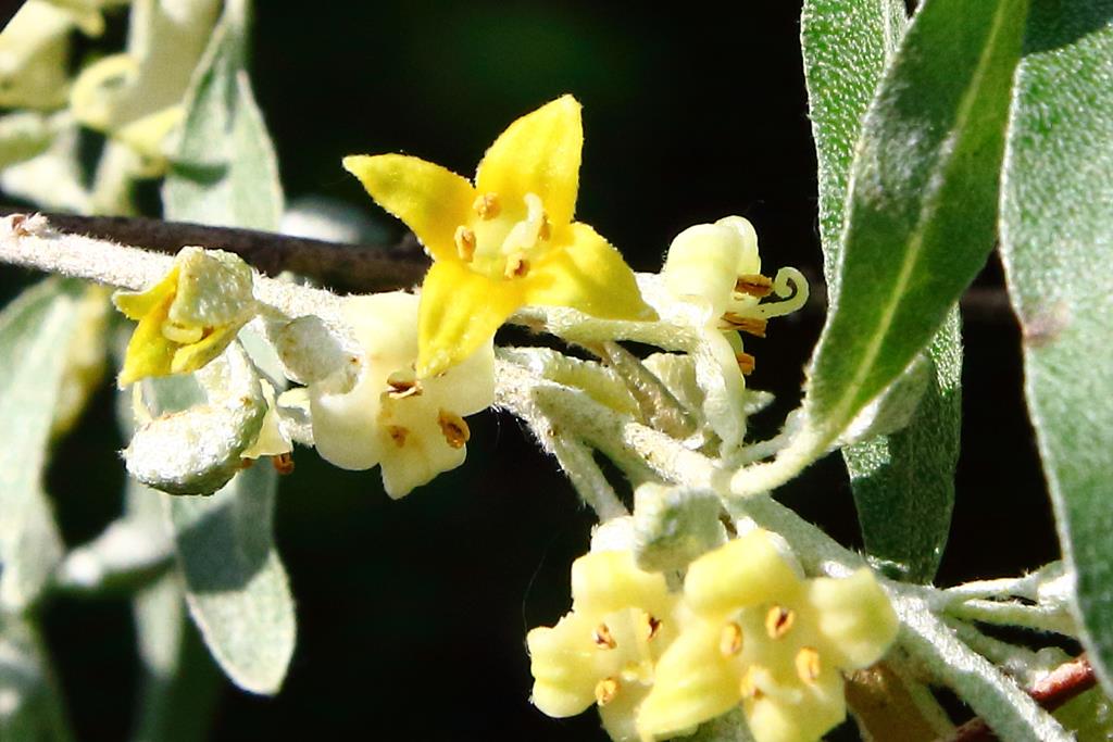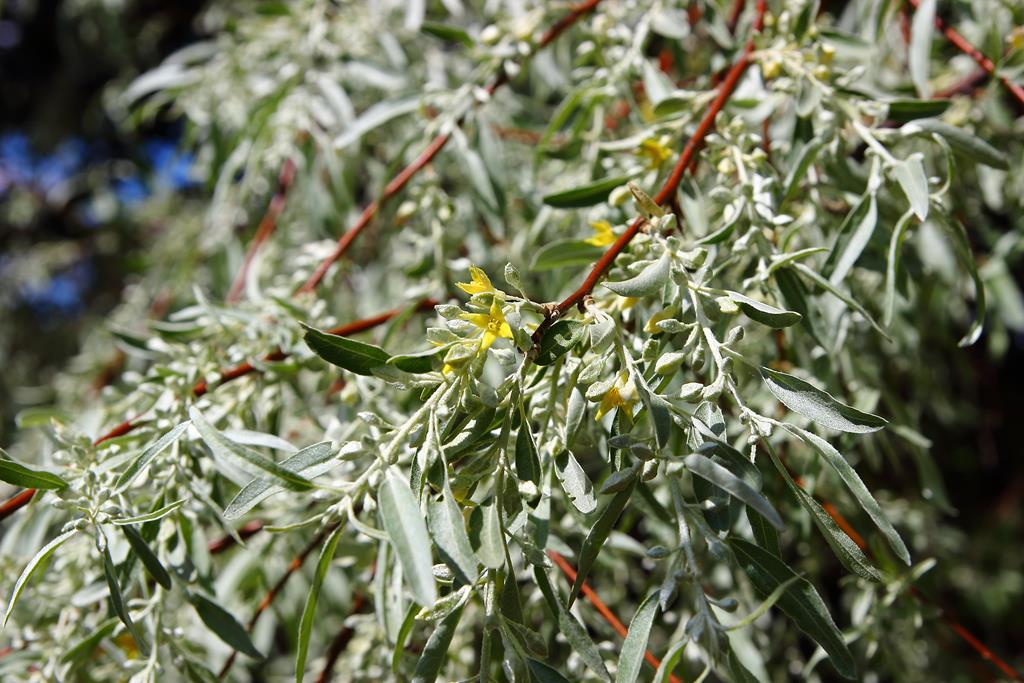 Opis. Niewielkie drzewo lub duży krzew, osiągający 6-8 m wysokości. Korona szeroka, nieregularna. Pędy pokryte ostrymi cierniami. Liście lancetowate, srebrzysto owłosione. Kwiaty żółte, niepozorne, przyjemnie pachnące. Kwitnie od końca maja do połowy czerwca. Owoce owalne, srebrzyste, do 1,5 cm długości.