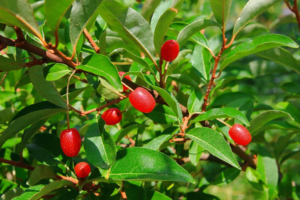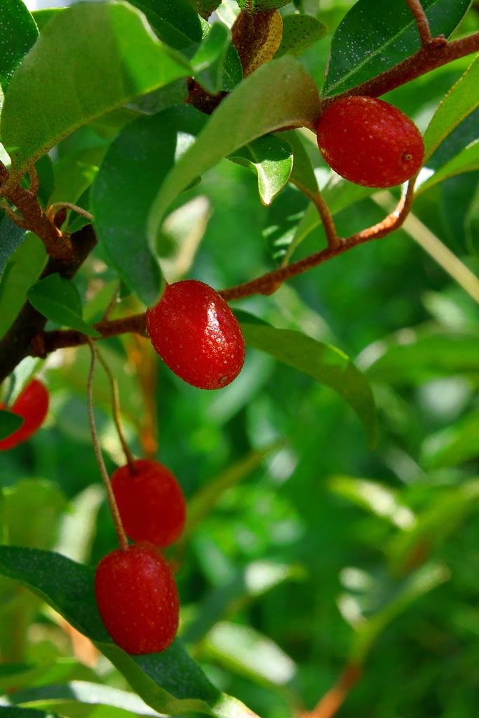 Opis. Krzew w naszych warunkach klimatycznych osiąga 2-3 m wysokości. Pokrój szeroki, rozłożysty. Kwiaty jasnożółte, przyjemnie pachnące, kwitnie na przełomie kwietnia i maja. Owoce owalne, do 1,5 cm długości, ciemnoczerwone, jadalne, słodko-kwaśne.