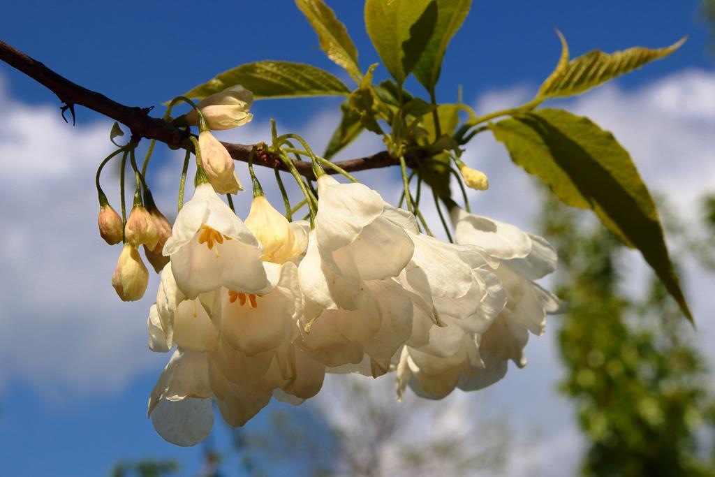 Opis. Małe drzewo dorastające do 6 m wysokości. Korona szeroka, nieregularna, nisko osadzona. Liście do 10 cm długości, eliptyczne, drobno piłkowane. Kwiaty białe, dzwonkowate, zebrane w pęczkach. Kwitnie w maju. Owoce podłużne, czteroskrzydłowe, długości 3-4 cm.
