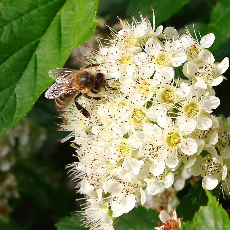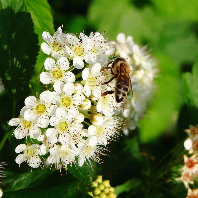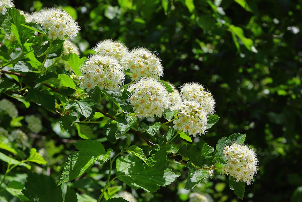 Opis. Rozłożysty, gęsty krzew osiągający 2-3 m wysokości. Kora szara, łuszcząca się podłużnymi płatami. Kwiaty białe, zebrane w kuliste, wypukłe baldachogrona na szczycie krótkich, bocznych gałązek. Kwitnie na przełomie maja i czerwca przez około 2 tygodnie. Owoce drobne, pęcherzykowate, zabarwione na brązowo.