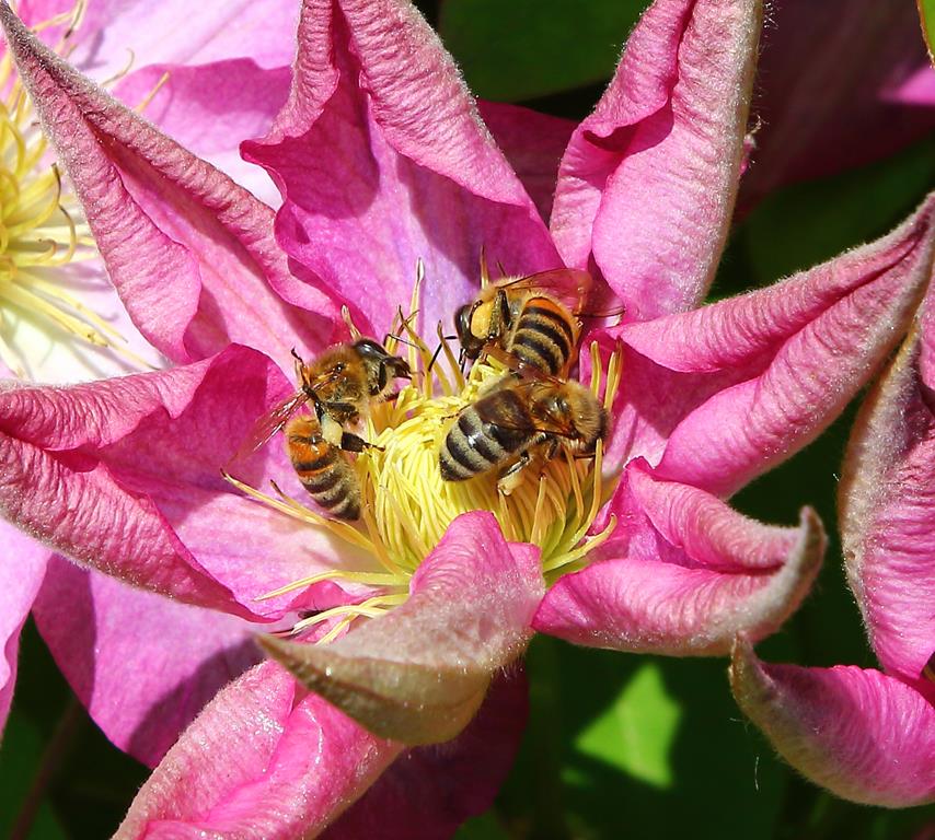 Opis. Powojnik wielkokwiatowy osiągający wysokość 2 m. Kwiaty różowe z rozjaśnieniem wzdłuż płatków, do 18 cm średnicy. Kwitnie bardzo obficie na pędach zeszłorocznych w maju, powtarza kwitnienie na pędach tegorocznych w sierpniu.