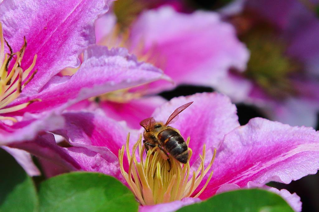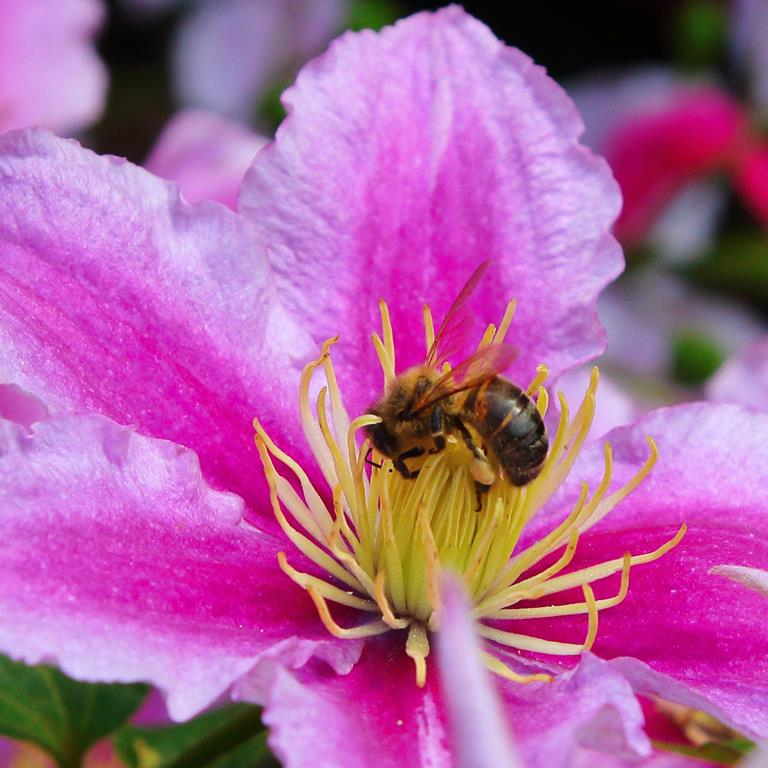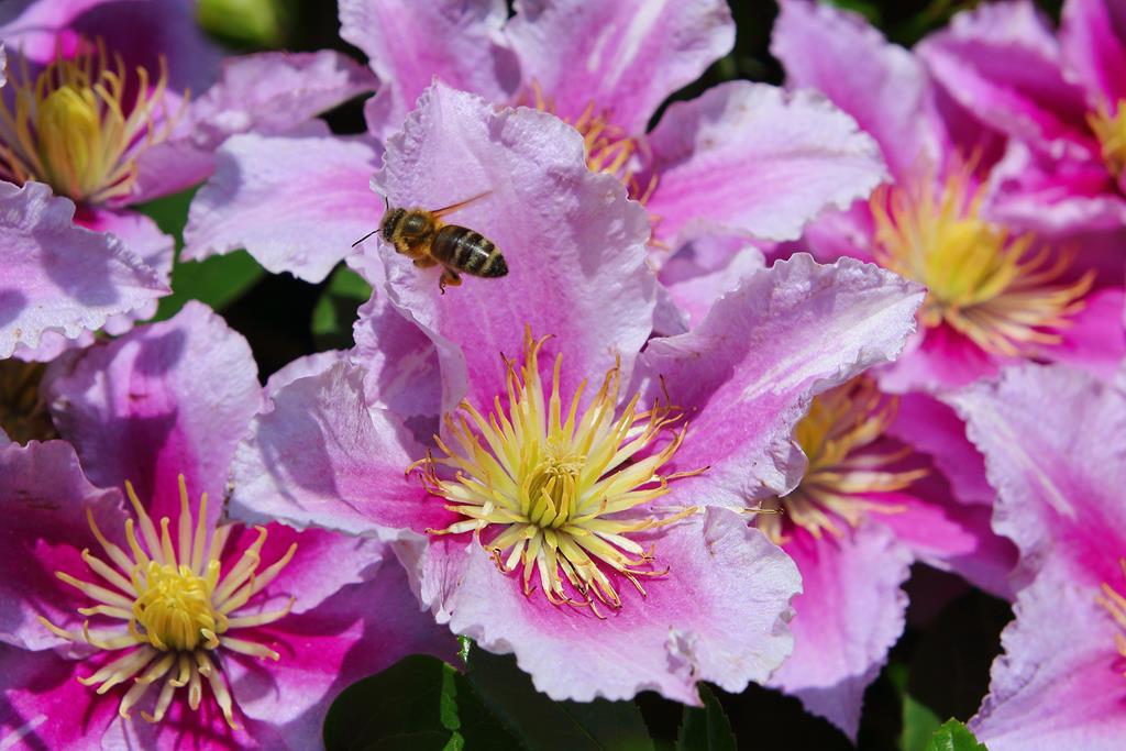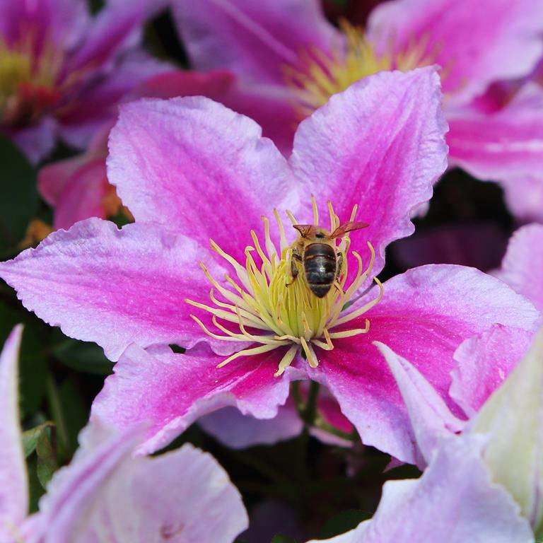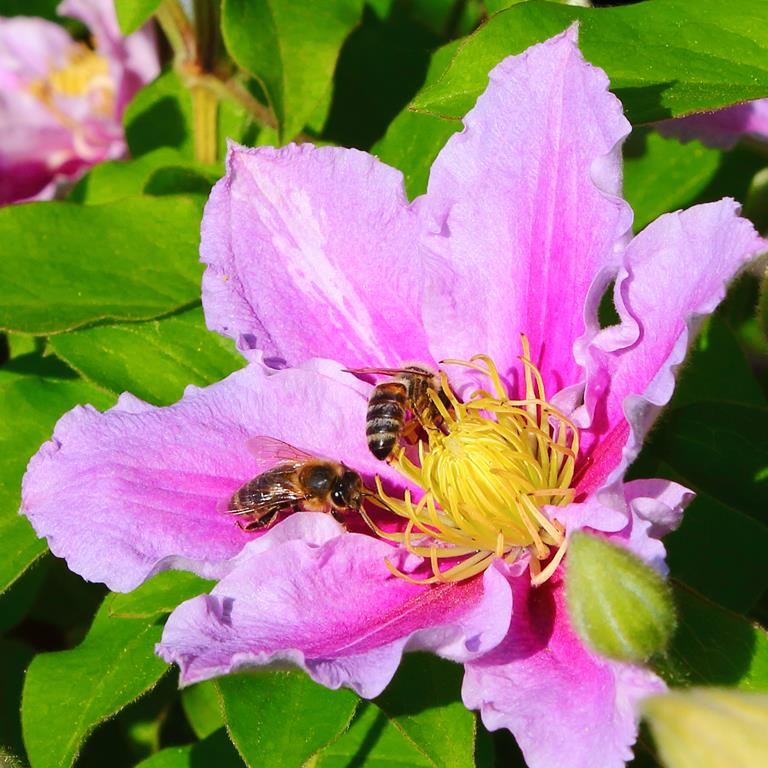 Opis. Powojnik osiągający wysokość 1,5 m. Liście pojedyncze i trójlistkowe. Kwiaty różowe z ciemnoróżową pręgą pośrodku, półpełne w czerwcu, pojedyncze w lipcu i sierpniu.