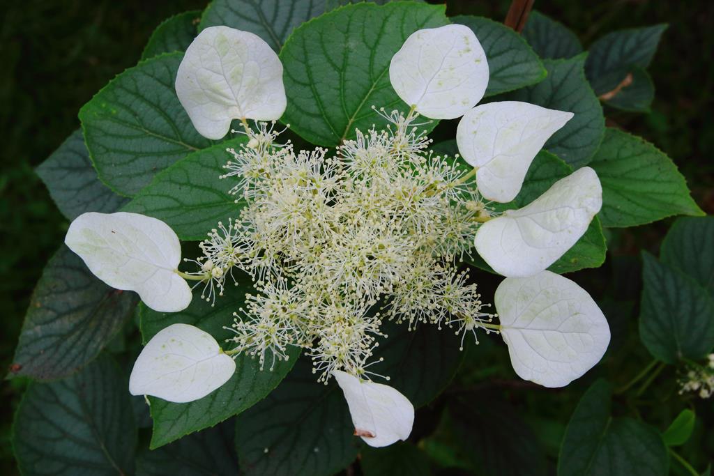 Opis. Wolno rosnące pnącze osiągające do 6 m wysokości. Liście srebrzystozielone, sercowate, grubo ząbkowane. Kwiaty białe, drobne, zebrane w płaskie kwiatostany śr. 25 cm. Kwitnie w lipcu.