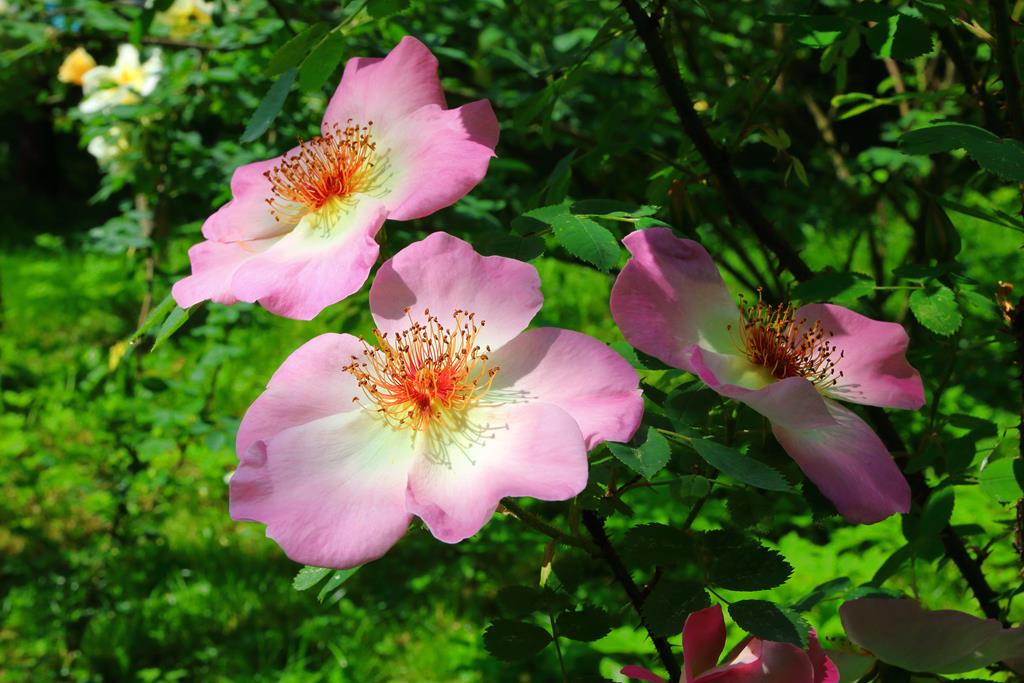 Kwiaty: różowe z jaśniejszym środkiem, pojedyncze, średnicy 10 cm, pachnące, VI