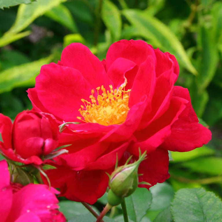 Kwiaty: karminowoczerwone, półpełne, średniej wielkości, zebrane w duże grona, VI-IX