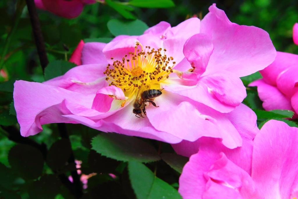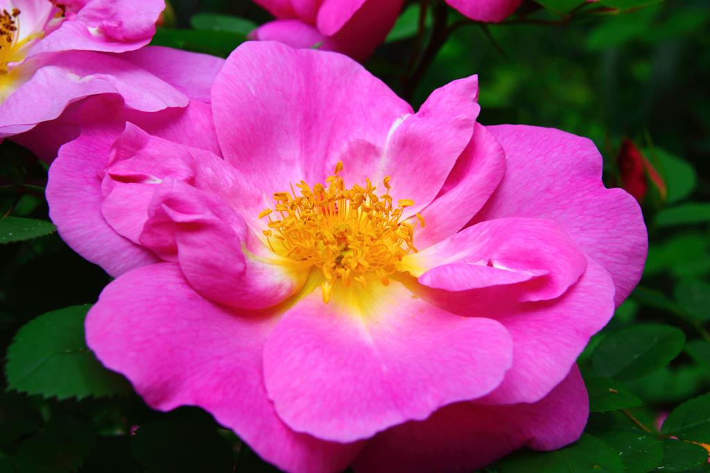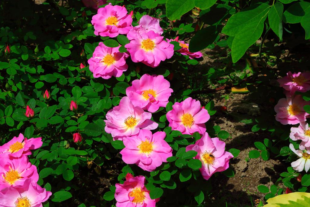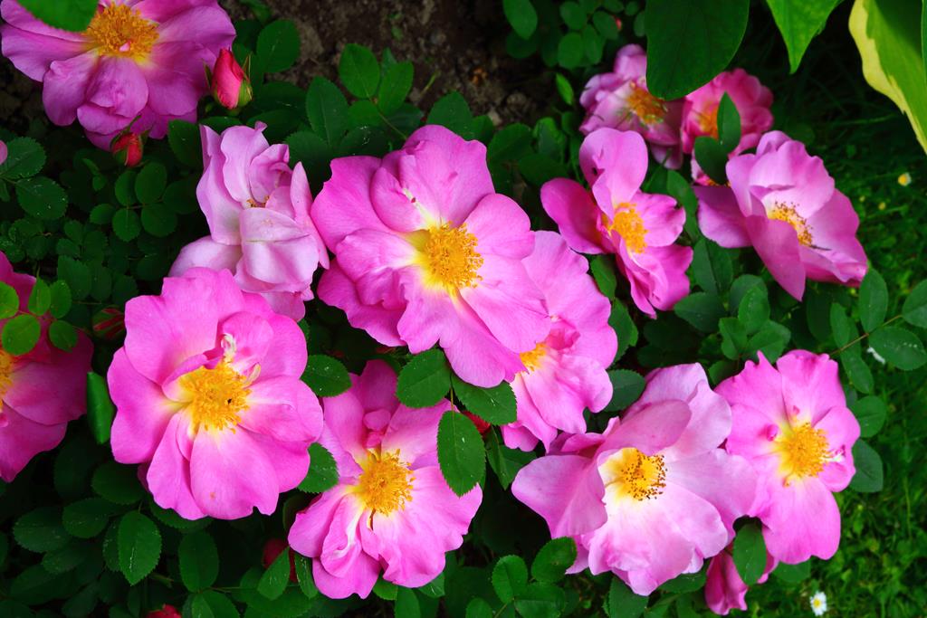 Kwiaty: różowe, pojedyncze, lekko pachnące, ok. 10 cm średnicy, V,VIII