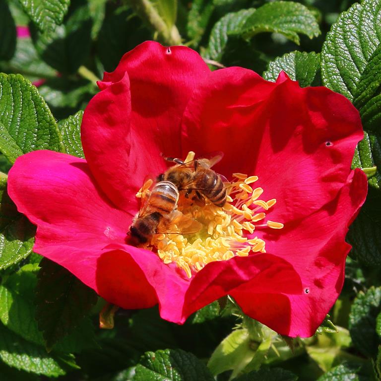 Kwiaty: czerwone, pojedyncze, pachnące, 6-8 cm średnicy, VI-X