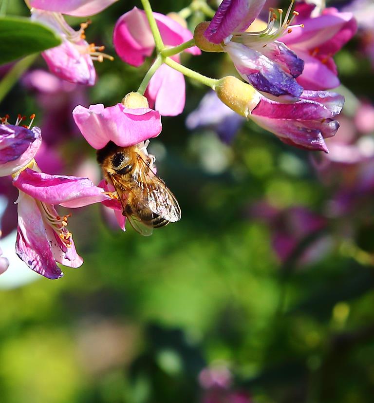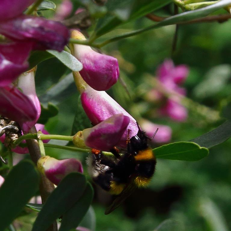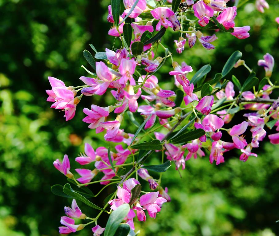 Opis. Krzew o szerokim, luźnym pokroju, dorastający do 2 m wys. Liście szarozielone, lancetowate. Kwiaty motylkowate, różowe lub jasnofioletowe, zebrane niewielkie grona. Kwitnie w końcu maja i na początku czerwca.