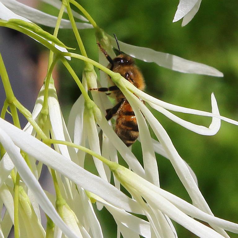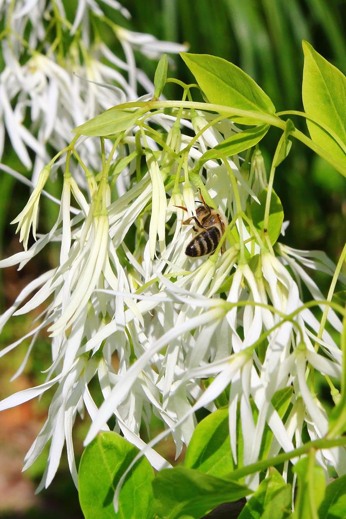 Opis. Niskie drzewo wysokości do 4-5 m. Pokrój szeroki, kulisty. Liście wąsko owalne o ostrym końcu, zielone, żółknące jesienią. Kwiaty białe, frędzelkowate, zebrane w zwisające wiechy do 20 cm długości. Kwitnie na przełomie maja i czerwca. Owoce fioletowe, podłużne, o długości ok. 2 cm.