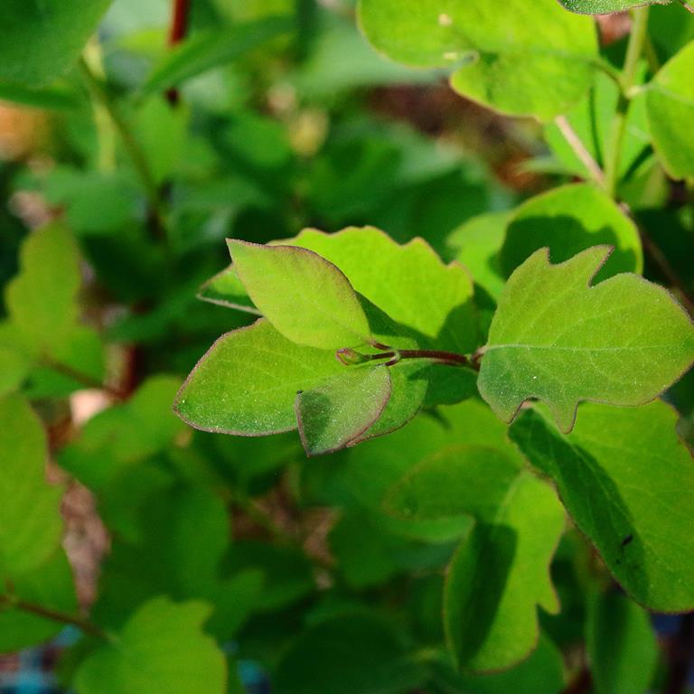 Opis. Osiąga wysokość do 2 m. Pokrój wyprostowany, gęsty, nieregularny. Liście ciemnozielone, jajowate. Kwiaty białe, drobne. Kwitnie od czerwca do września. Owoce białe, kuliste, zebrane w grona.