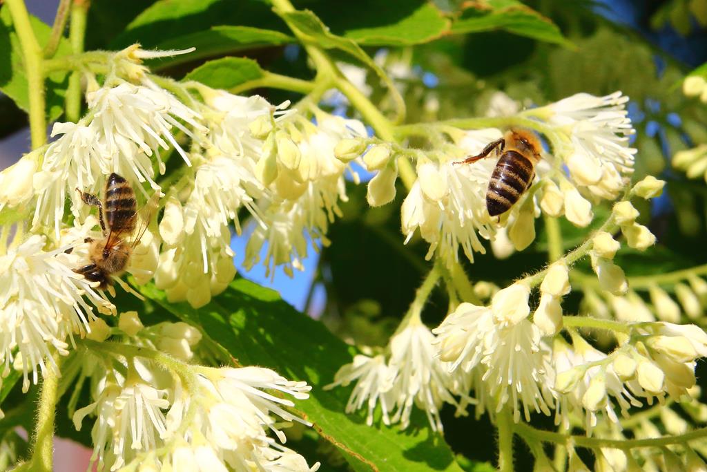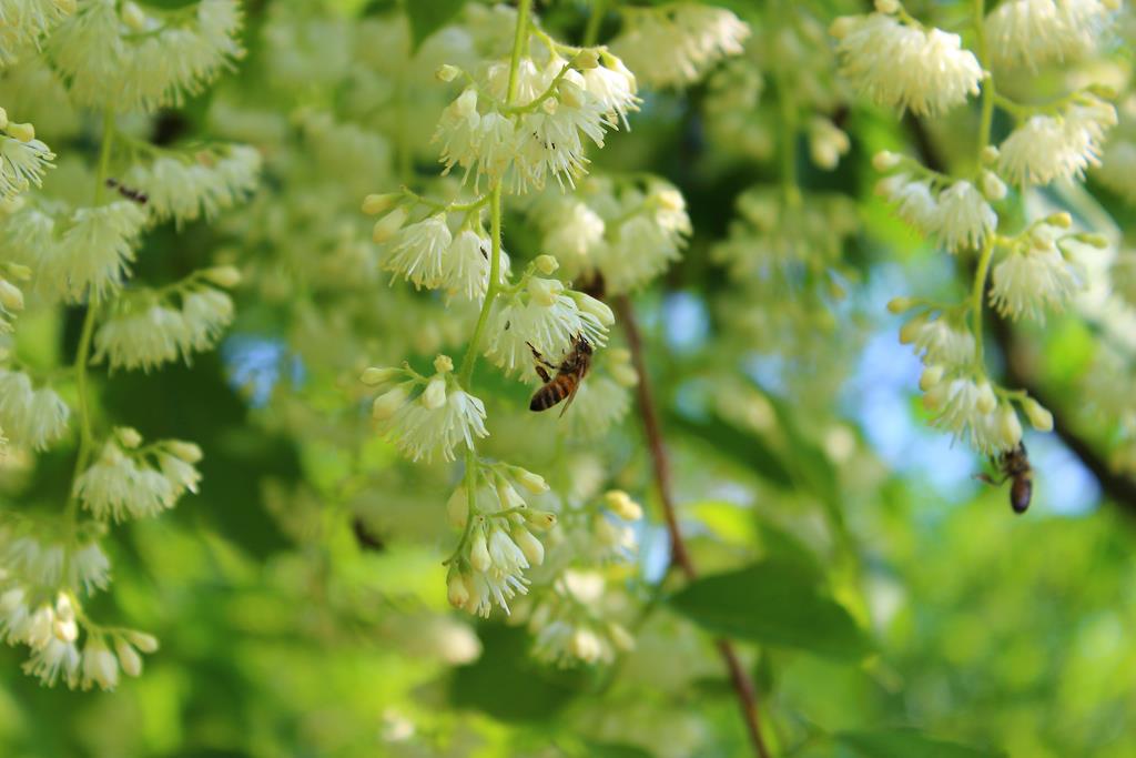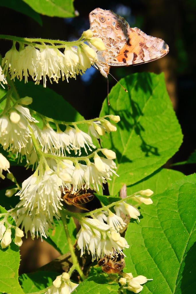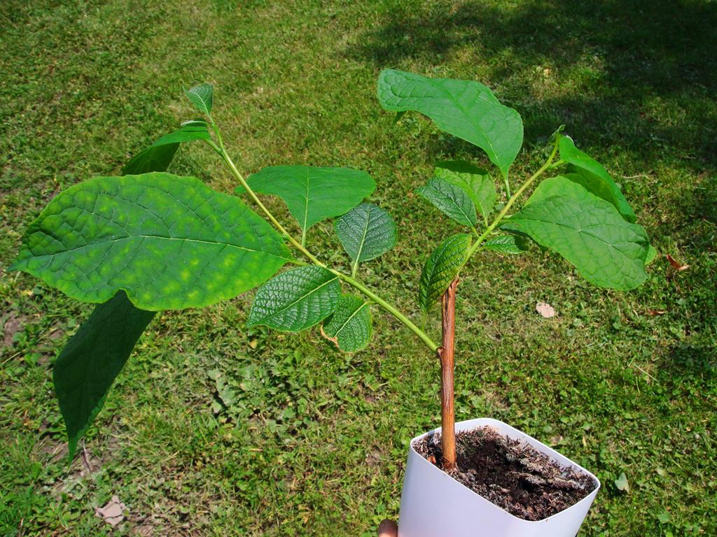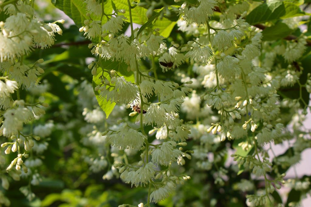 Opis. Wysoki, rozłożysty krzew lub nieduże drzewko do 5 metrów wysokości. Liście owalne, duże, długości do 30 cm. Kwiaty białe, z długimi licznymi pręcikami, zebrane w długie, zwisające wiechy. Kwitnie bardzo obficie w pierwszej połowie czerwca.