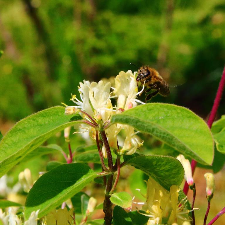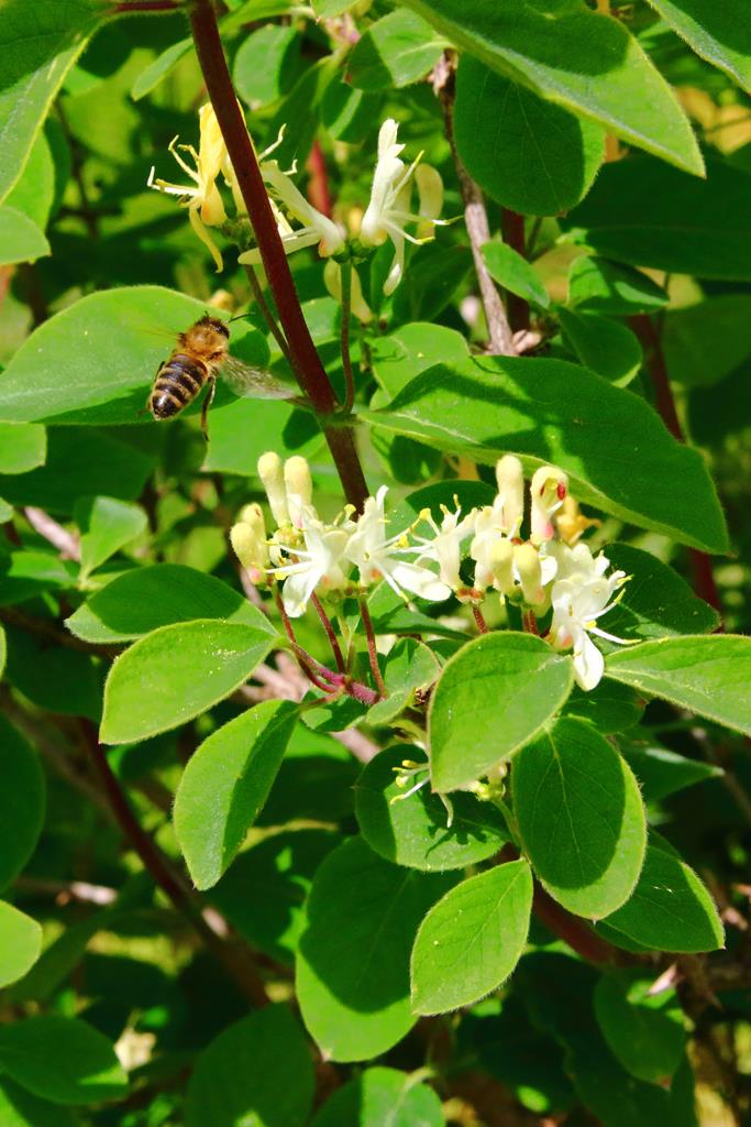 Opis. Krzew dorastający do 2 m wysokości, o gęstej, zaokrąglonej koronie. Liście jajowate, zielononiebieskie. Kwiaty długości do 1,5 cm, kremowobiałe, żółknące podczas przekwitania. Zakwita w końcu maja. Owoce czerwone, kuliste, dojrzewające w lipcu.