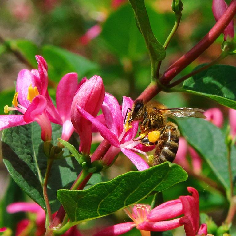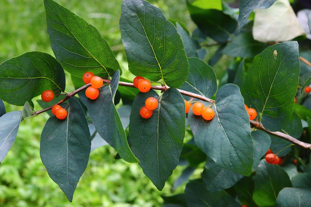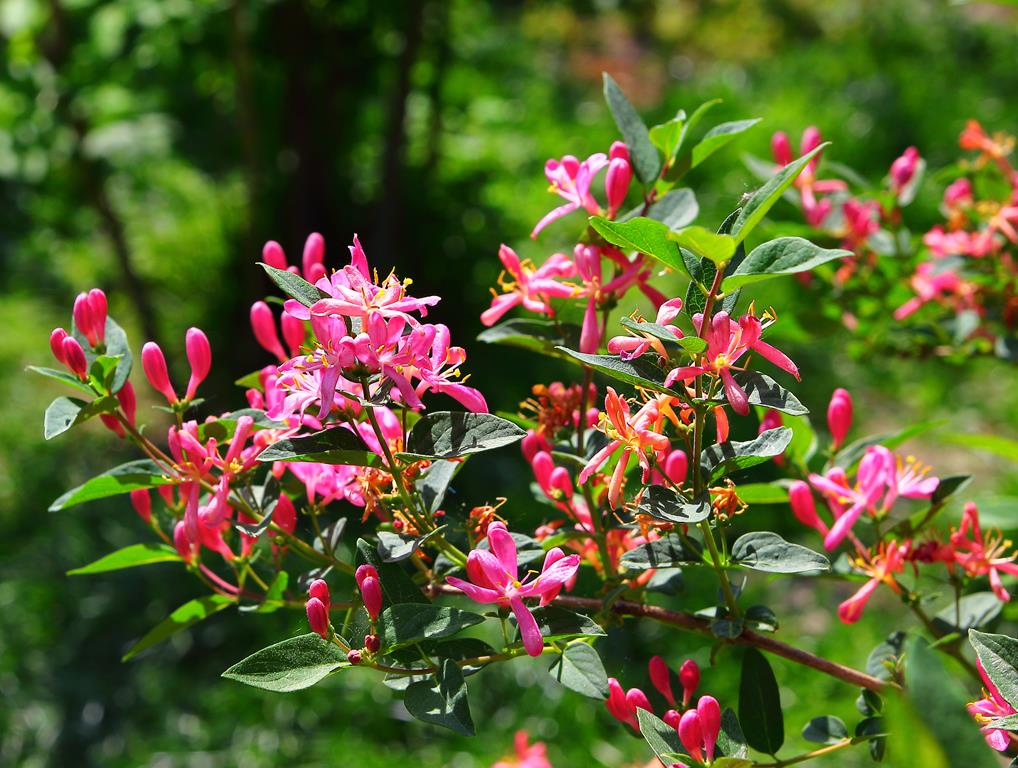 Opis. Krzew dorastający do 2 m wysokości i podobnej szerokości. Liście jajowate, niebieskozielone, dł. około 3 cm. Kwiaty rurkowate, różowe, pachnące. Kwitnie na przełomie maja i czerwca. Owoce czerwonopomarańczowe, błyszczące, dekoracyjne.