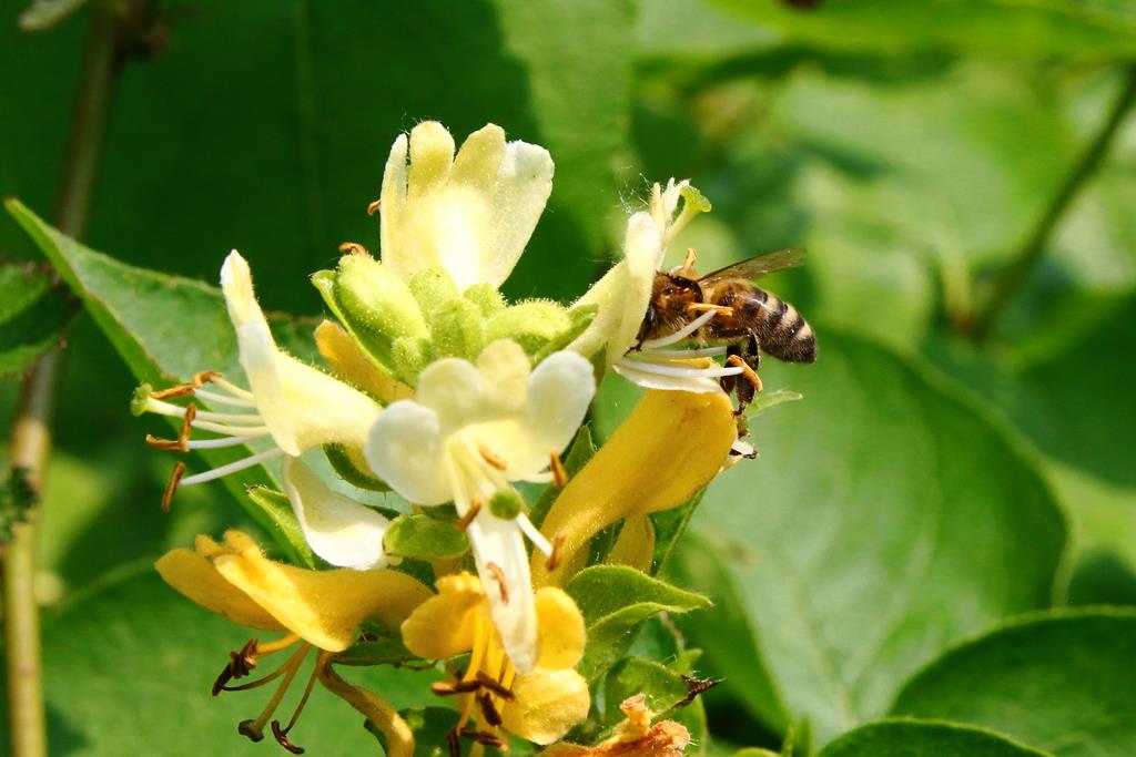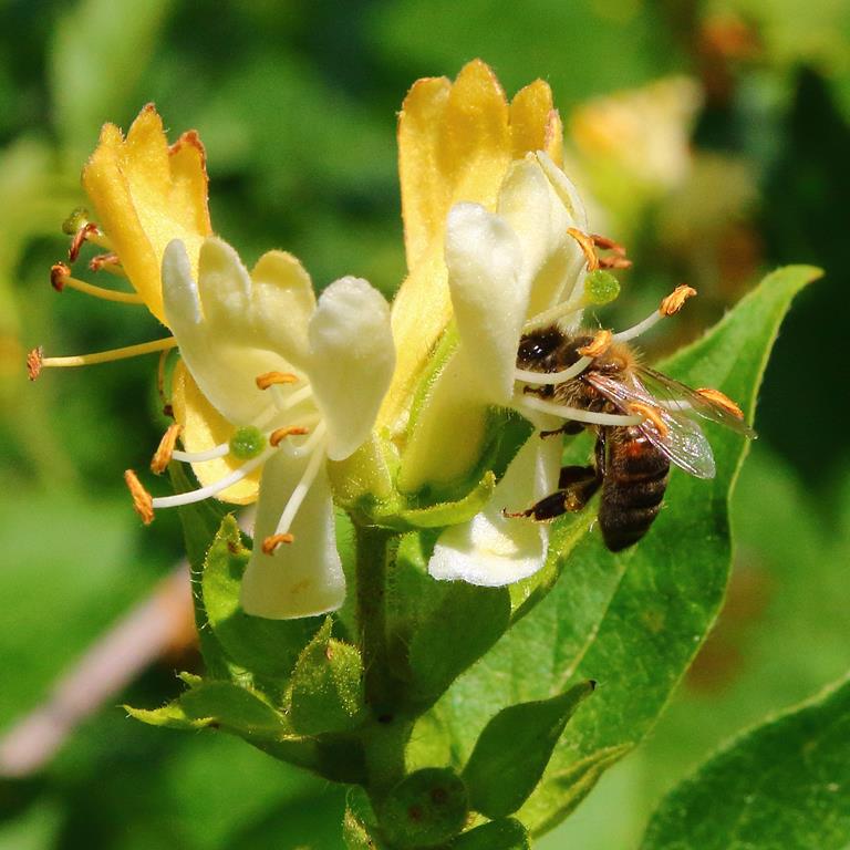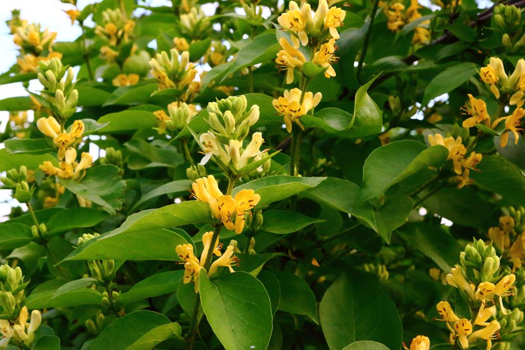 Opis. Krzew o wysokości do 2,5 m. Pokrój początkowo kulisty, później nieregularny. Liście ciemnozielone, szeroko lancetowate. Kwiaty żółte, rurkowate, zebrane w niewielkie kwiatostany na szczytach pędów. Kwitnie na przełomie maja i czerwca. Owoce owalne, czerwone, bardzo dekoracyjne.
