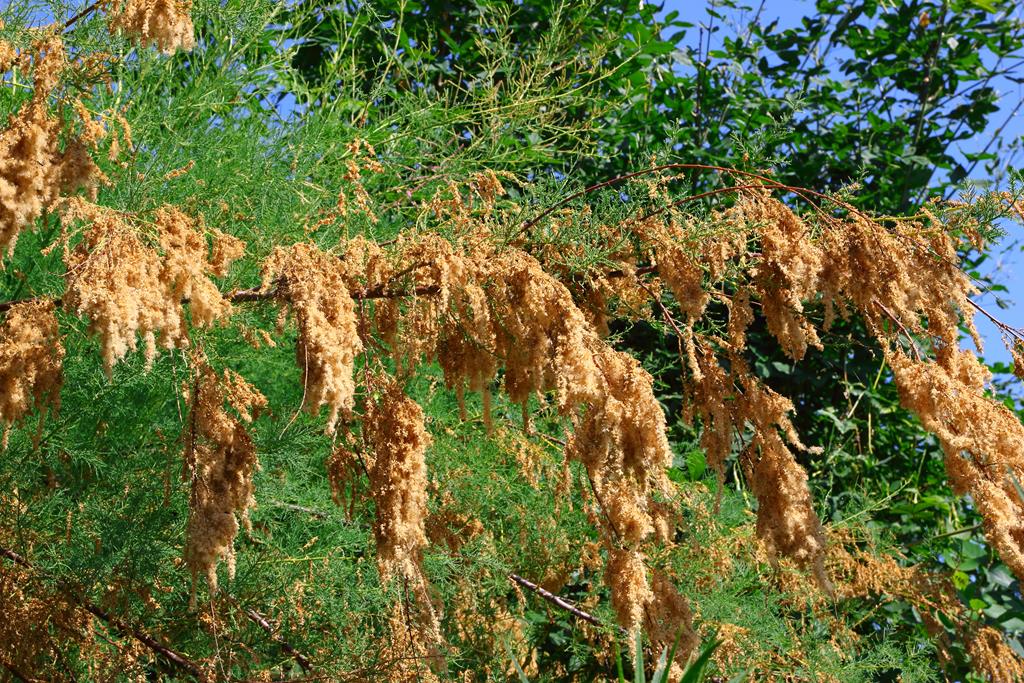Opis. Rozłożysty, szeroki krzew do 3 m wysokości. Pędy cienkie, łukowato wygięte. Kwiaty różowobiałe w luźnych wiechach. Kwitnie w lipcu i sierpniu.