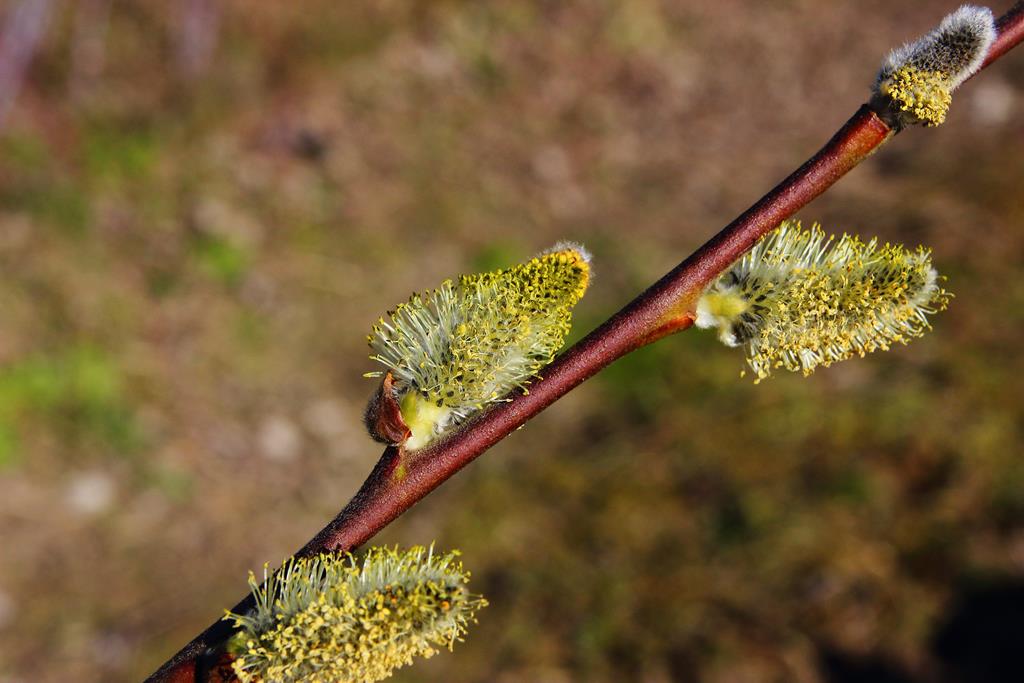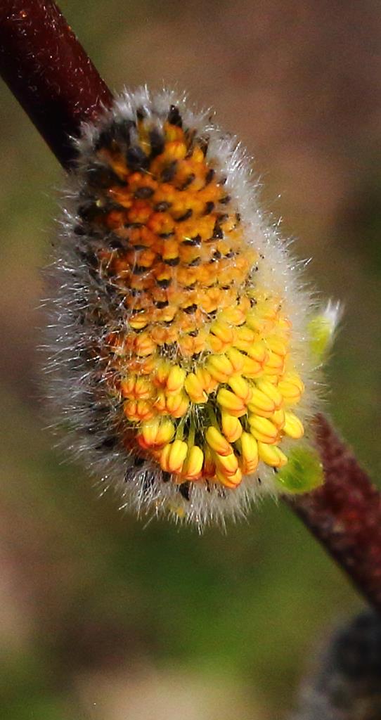 Opis. Wysoki krzew lub średniej wielkości drzewo. Pędy wyprostowane, sztywne, szarobrązowe, liście owalno-lancetowate. Bazie duże, srebrzyste, w czasie kwitnienia żółte. Kwitnie na przełomie marca i kwietnia przed rozwojem liści. Klon męski.