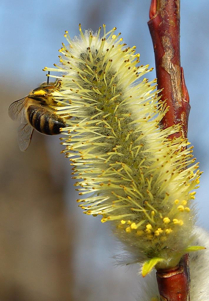 Opis. Dorasta do 8 m wysokości. Pędy wyprostowane, czerwono zabarwione. Liście jajowato-lancetowate. Bazie koloru żółtego, liczne, kwitnie marzec-kwiecień. Klon męski.