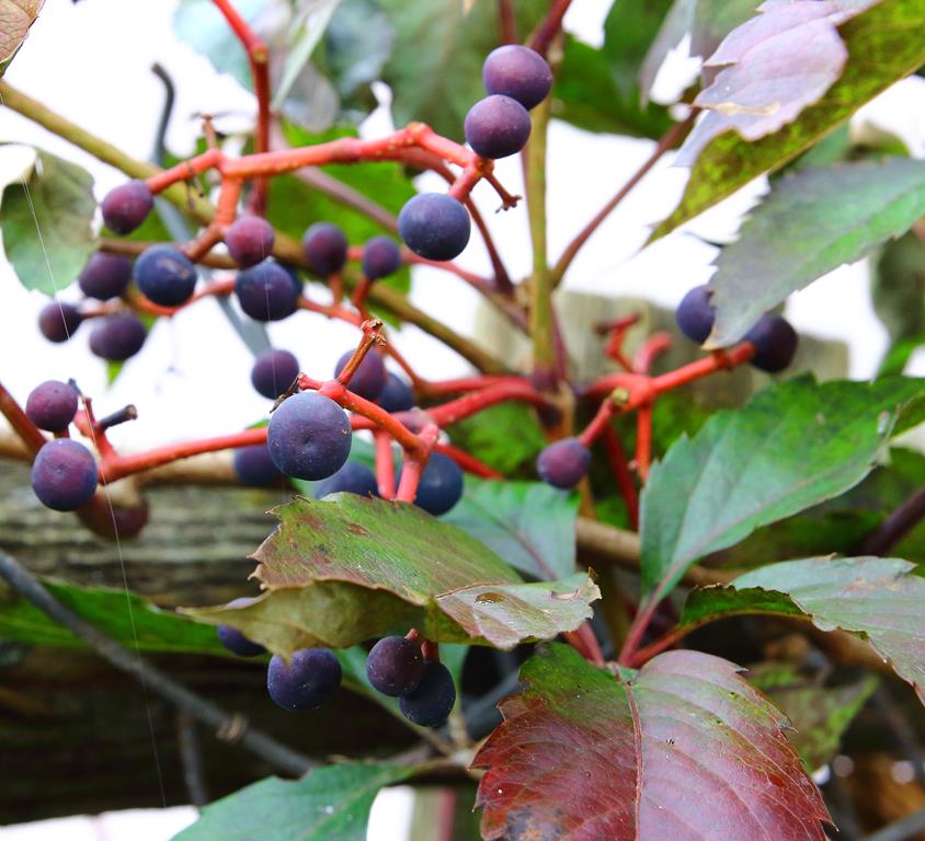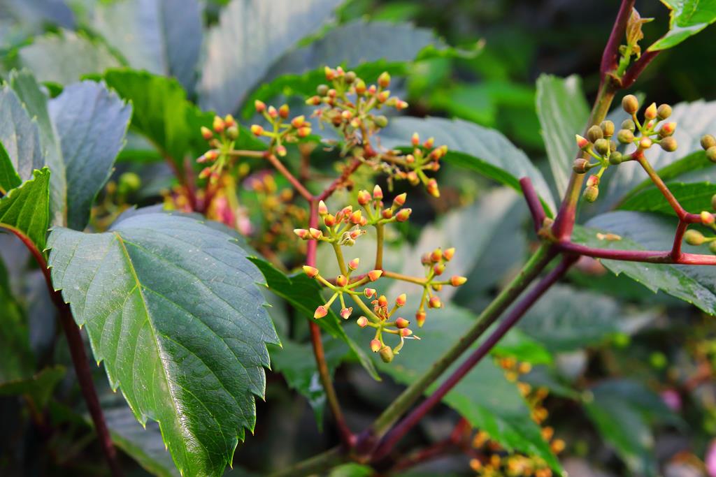 Opis. Szybko rosnące pnącze do 10-20 m wys. Liście duże, 5-klapowe, zielone, jesienią intensywnie czerwone. Kwiaty niepozorne, zielonożółte, pojawiają się od lipca do września. Owoce małe, fioletowoczarne, niejadalne.