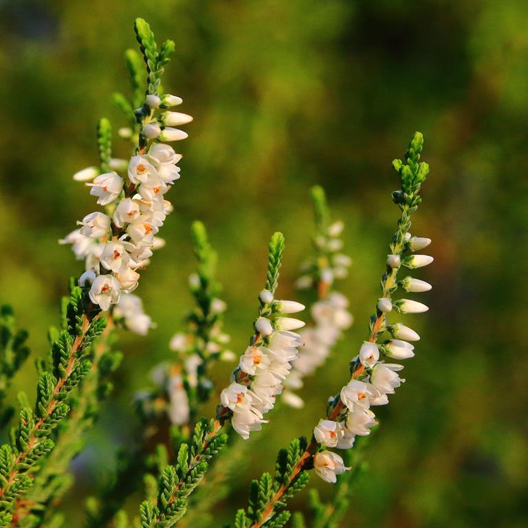 Opis. Zimozielona, wolno rosnąca krzewinka dorastająca do 0,5 m wysokości. Liście ciemnozielone, łuskowate, do 2 mm długości. Kwiaty białe, dzwonkowate, pojedyncze, osadzone w kątach liści wzdłuż wyprostowanych tegorocznych pędów. Kwitnie od początku sierpnia do końca września.