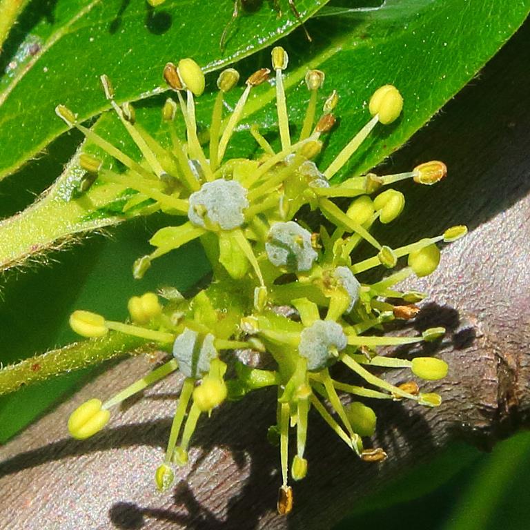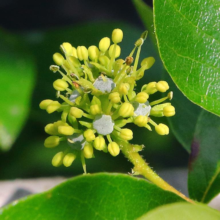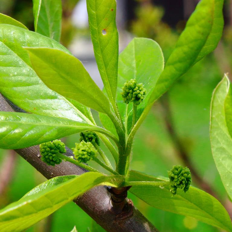 Opis. Drzewo do 20 m wysokości. Gałęzie cienkie, poziomo rozpostarte. Liście błyszczące, jajowate, ciemnozielone, jesienią jaskrawoczerwone. Kwiaty niepozorne, bezpłatkowe, zielonkawe, zebrane w główkowate kwiatostany. Zakwita w pierwszej dekadzie czerwca i kwitnie przez około 3 tygodnie. Owoce jadalne, lekko kwaśne pestkowce o długości około 1 cm.