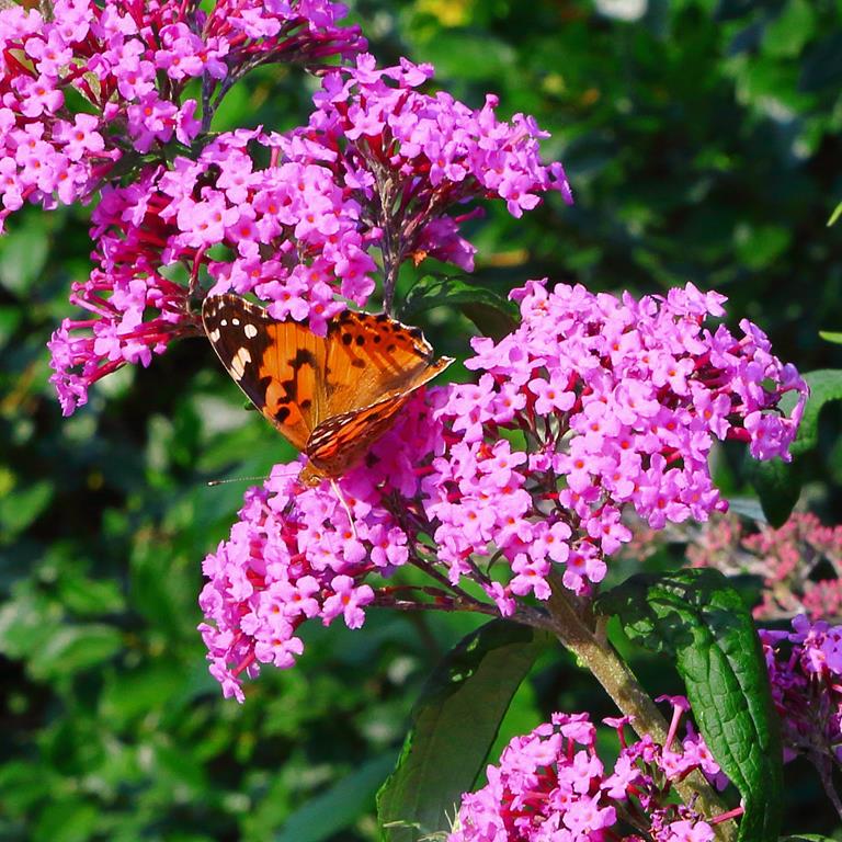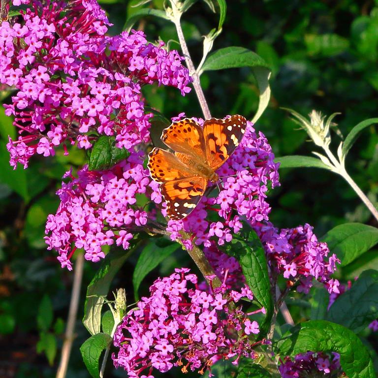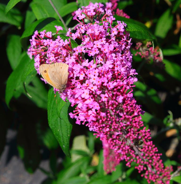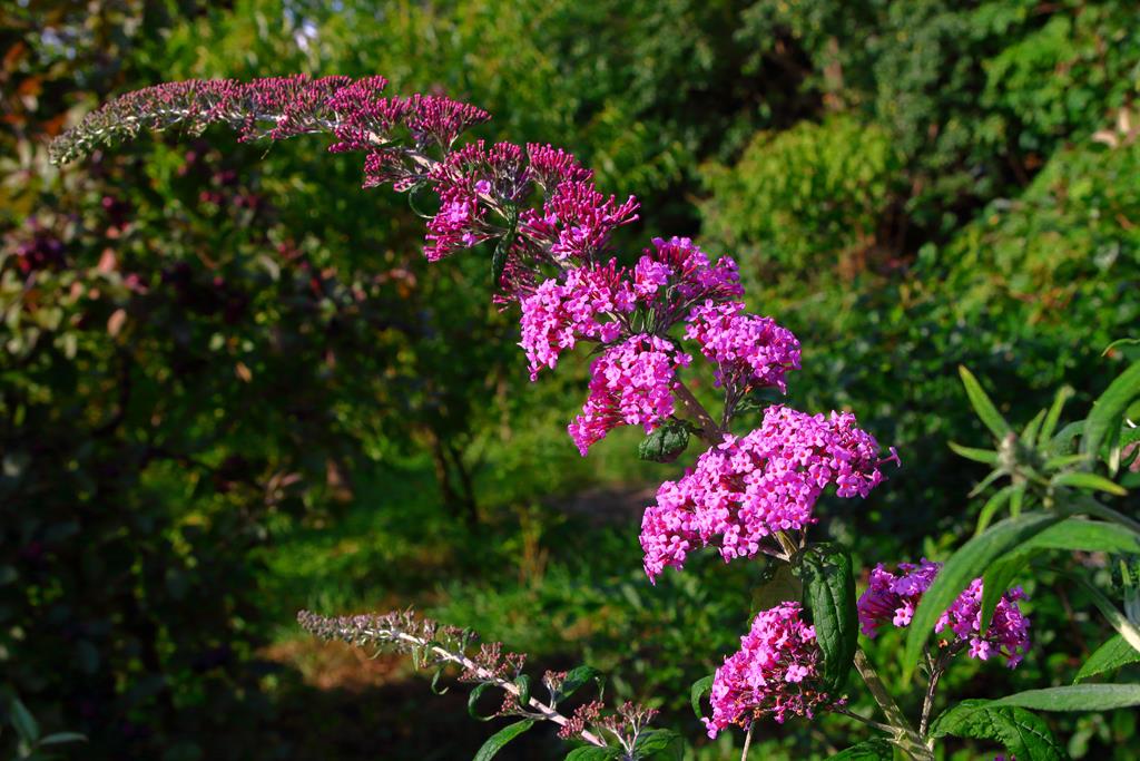 Opis. Krzew 2-3 m wysokości. Pędy wzniesione, w górze łukowato wygięte. Liście lancetowate, ciemnozielone. Kwiaty purpurowe, pachnące, zebrane w wiechy długości do 50 cm. Kwitnie obficie na tegorocznych pędach w lipcu-sierpniu.