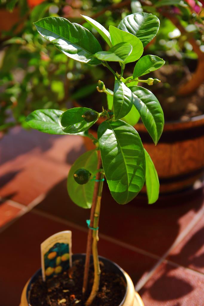 Opis. Karłowe, zimozielone drzewko dorastające w uprawie pojemnikowej do ok. 2-3 m wysokości. Korona zwarta, gęsta. Liście ciemnozielone, duże, eliptyczne. Kwiaty białe, średnicy około 2-3 cm, mocno pachnące. Kwitnie przez cały rok. Owoce jadalne, duże, do 1 kg. Odmiana samopylna.