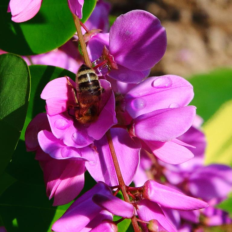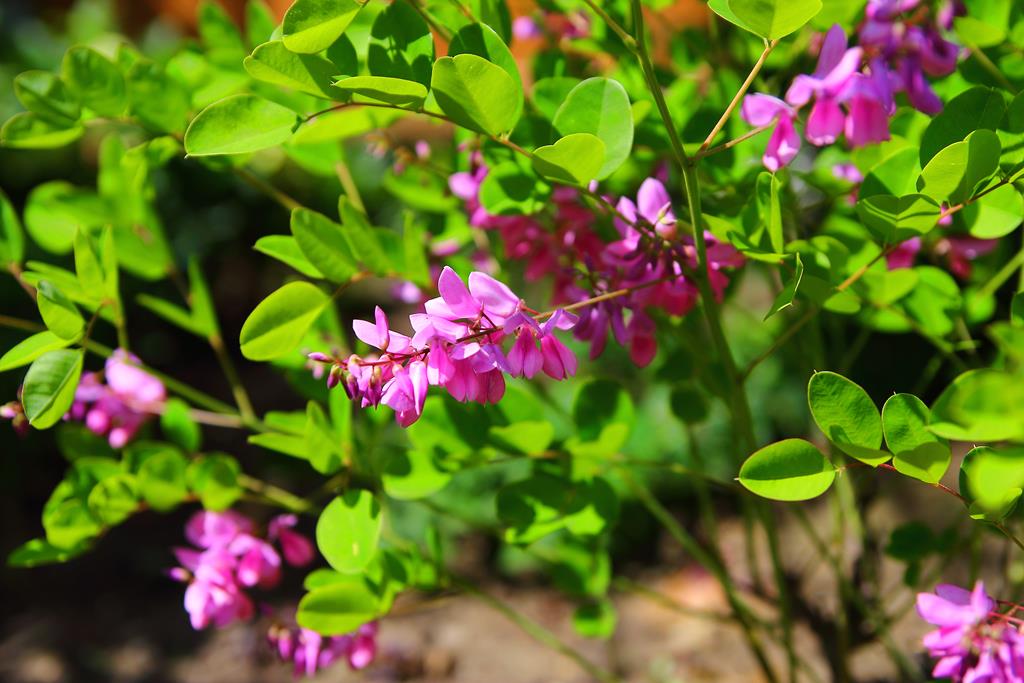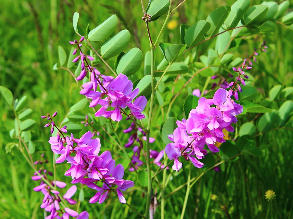 Opis. Gęsty krzew o półzdrewniałych pędach, dorastający do około 1 m wysokości i szerokości. Liście jasnozielone, pierzastozłożone. Kwiaty lilioworóżowe, motylkowate, zebrane w niewielkie grona. Kwitnie na tegorocznych pędach na przełomie czerwca i lipca. Okazjonalnie może powtarzać kwitnienie do jesieni.
