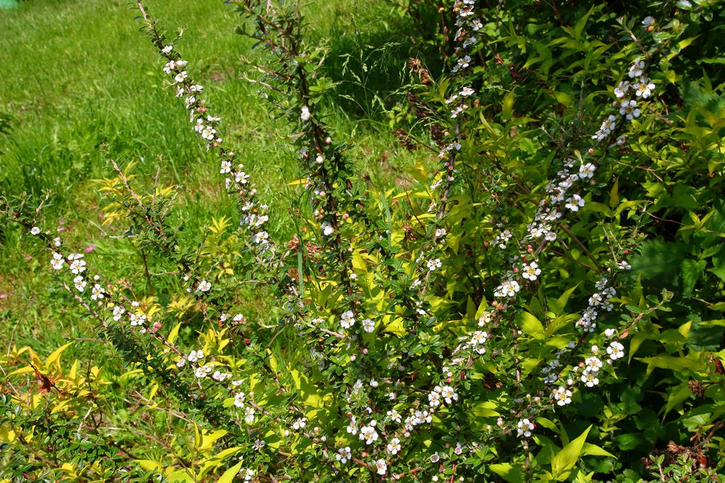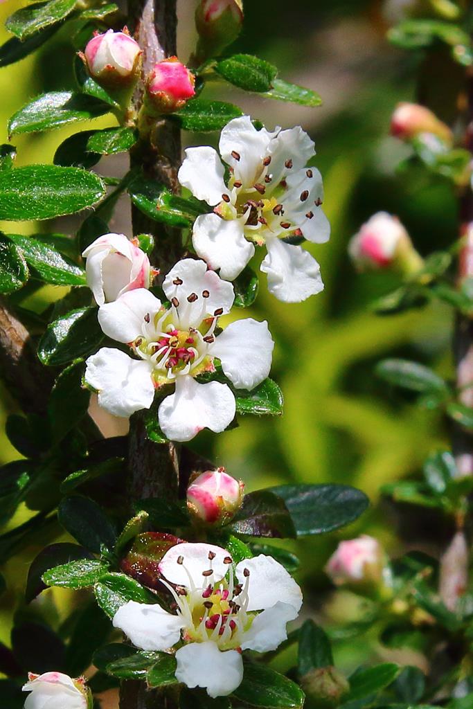 Opis. Krzew dorastający do wysokości 1 m, szeroko rozrastający się na boki. Liście zimozielone, niewielkie, wąsko eliptyczne. Kwiaty białe, drobne, gwiazdkowate. Kwitnie na przełomie maja i czerwca. Owoce kuliste, czerwone, dojrzewają we wrześniu.