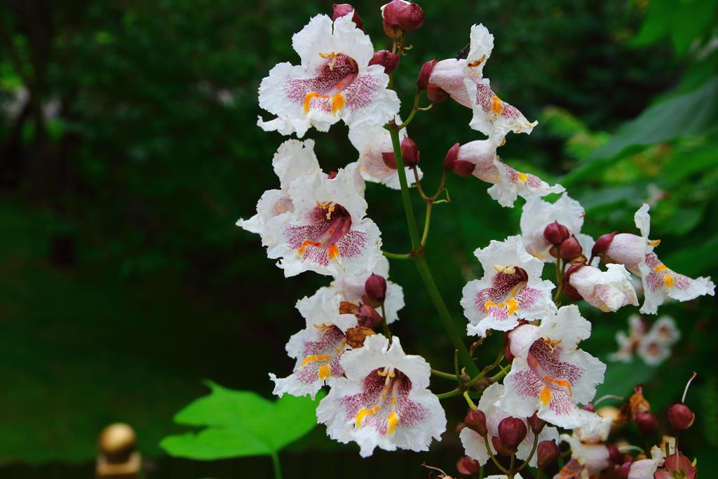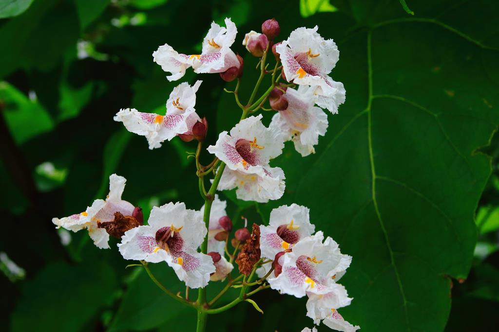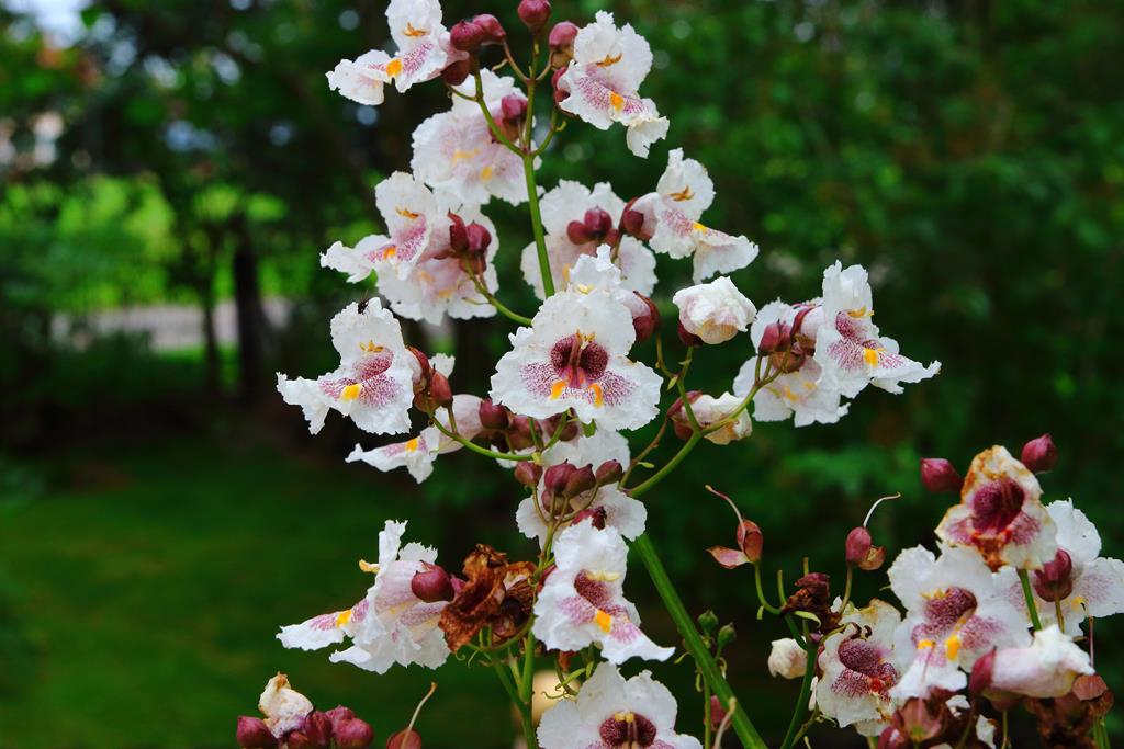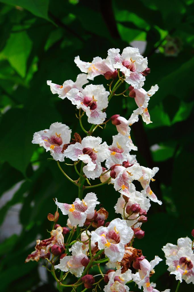 Opis. Drzewo dorastające w Polsce do wysokości 15-20 metrów. Korona rozłożysta, zaokrąglona. Kwiaty białe, duże, wewnątrz fioletowo nakrapiane, zebrane w wiechowate kwiatostany. Kwitnie bardzo obficie w lipcu. Owoce - grube strąki, zwykle nieliczne, długości do 40 cm.