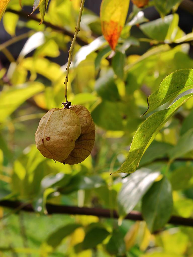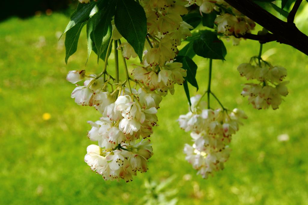 Opis. Rozłożysty krzew dorastający do około 4 m wysokości. Kwiaty białe lub lekko zaróżowione, zebrane w groniaste, zwisające kwiatostany, pojawiają się maju. Owoce w postaci rozdętych, kulistych torebek dojrzewających we wrześniu i październiku. Nasiona jadalne, wykorzystywane do wyrobu różańców. Roślina bardzo rzadko występuje w południowej Polsce, objęta ochroną ścisłą.