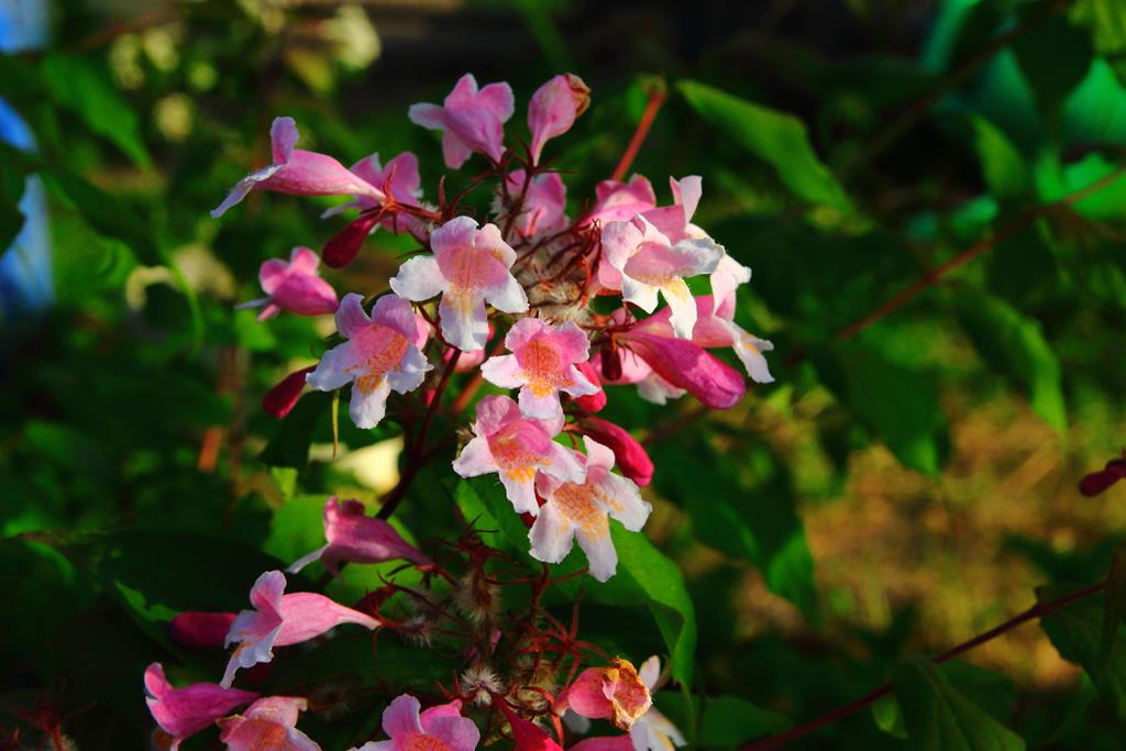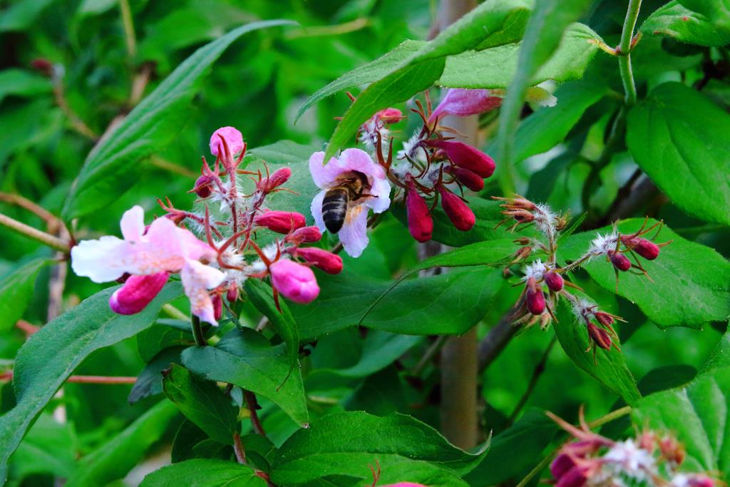 Opis. Krzew o rozłożystym pokroju z przewieszającymi pędami, dorastający do 2-3 m wysokości. Liście jajowate długości 3-7 cm. Kwiaty różowe, 5-krotne, dzwonkowate ze zrośniętym do połowy kielichem. Kwitnie na przełomie maja i czerwca.