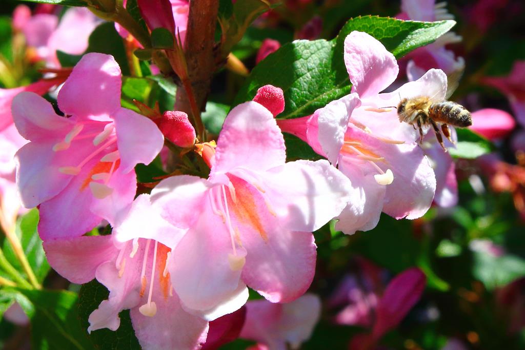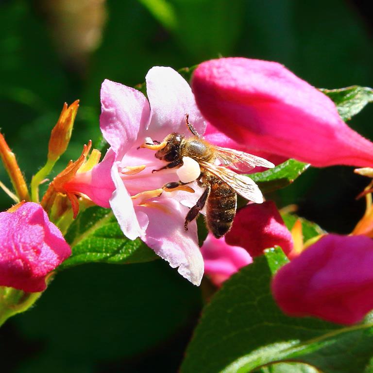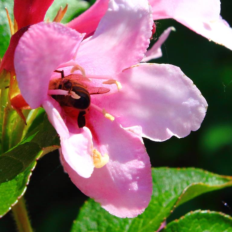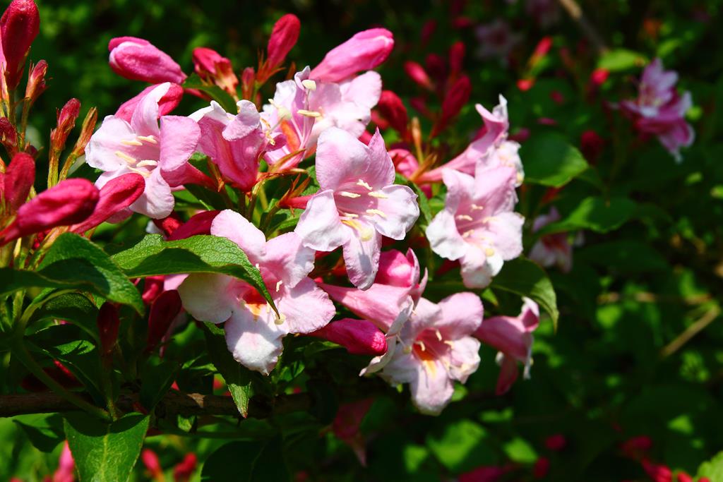 Opis. Krzew dorastający do wysokości 2-3 m. Pokrój wzniesiony, lekko rozłożysty. Liście zielone, eliptyczne, o zaostrzonym wierzchołku. Kwiaty liczne, dzwonkowate, ciemnoróżowe. Kwitnie obficie od połowy maja do końca czerwca na zeszłorocznych pędach.