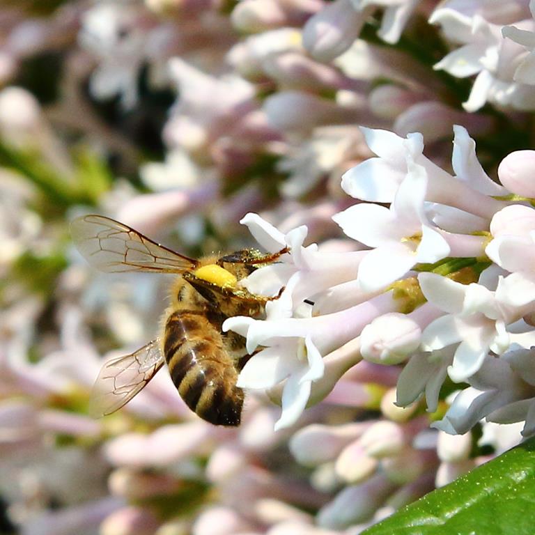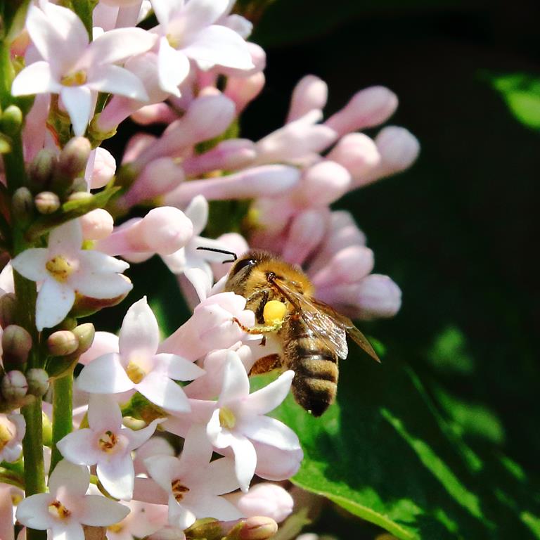 Opis. Krzew dorastający do 4 m wysokości. Pokrój gęsty, zwarty, pędy sztywne. Liście ciemnozielone, szeroko eliptyczne, do 12 cm długości. Kwiaty jasnoróżowe, zebrane w gęste, wyprostowane wiechy. Kwitnie bardzo obficie w maju.