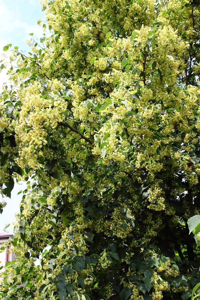 Opis. Drzewo dorastające do 15-20 m wysokości. Pokrój zwarty, owalny. Liście okrągławe, średnicy do 10 cm, sercowate u podstawy. Kwiaty żółte, drobne, silnie pachnące, zebrane po 7–35 w zwisające kwiatostany. Zakwita późno, w trzeciej dekadzie lipca.