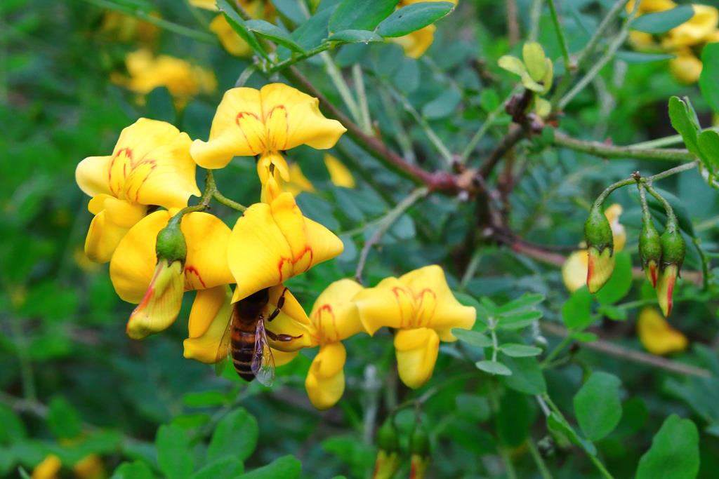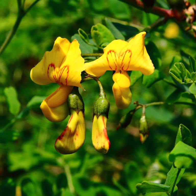 Opis. Krzew o wysokości do 3-4 m. Liście jasnozielone, pierzaste, złożone z maksymalnie 6 par listków. Kwiaty żółte, motylkowe, zebrane po kilka w luźne, zwisłe grona. Kwitnie od czerwca do jesieni. Owoce – rozdęte, pęcherzykowate strąki do 8 cm długości.